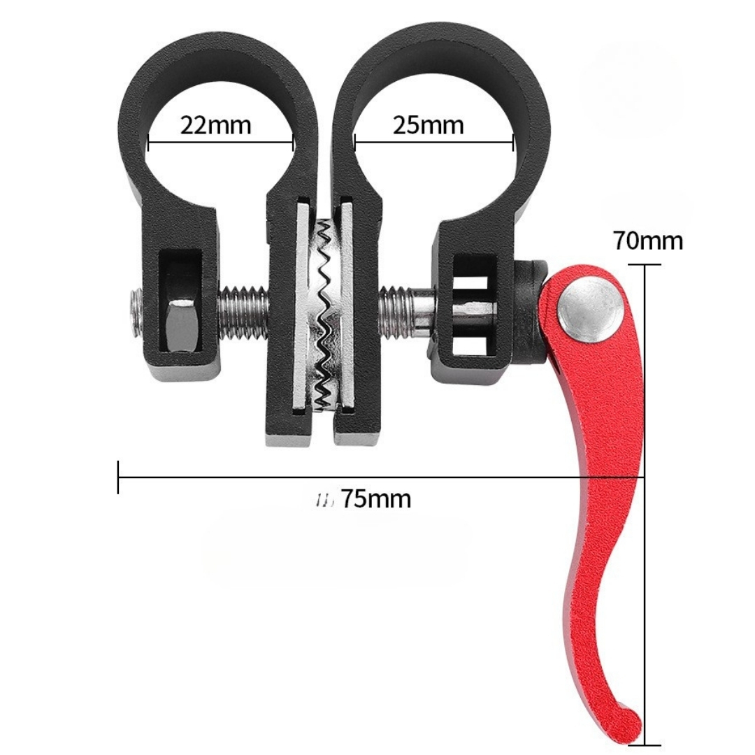 アルミニウム合金製 角度調整ジョイントホルダーです。φ25mmの支柱とφ22mmの支柱の角度調整および固定が可能となります