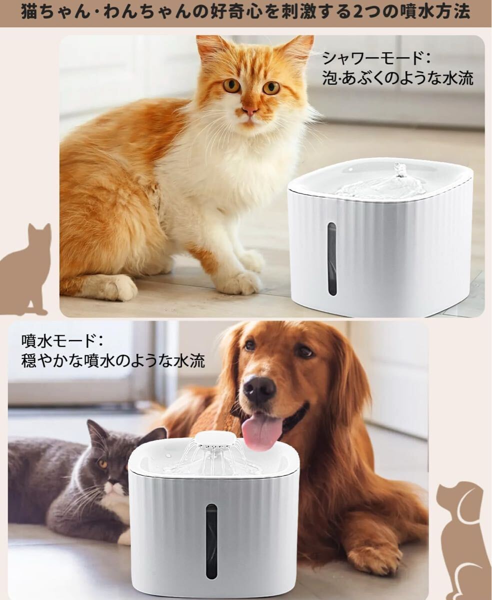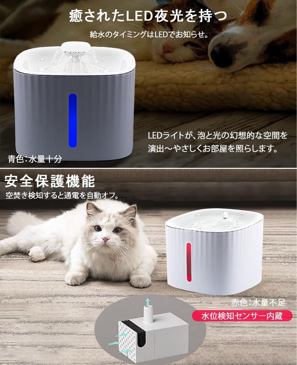 猫 犬 水飲み器 自動給水器 ペット給水器 循環式 猫犬兼用 みずのみ 2つの給水モード 省エネ LEDライト付き 四重濾過 日本語英語取扱説明書