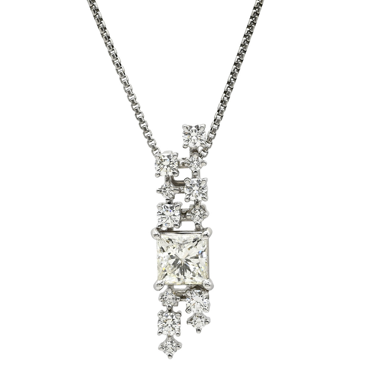 | TASAKI TASAKI ネックレス Pt900 ダイヤモンド Pt850(チェーン) プラチナシルバープラチナム プリンセスカット スクエア ドロップ ムービング - レディース定番 人気 美品 中古 | |