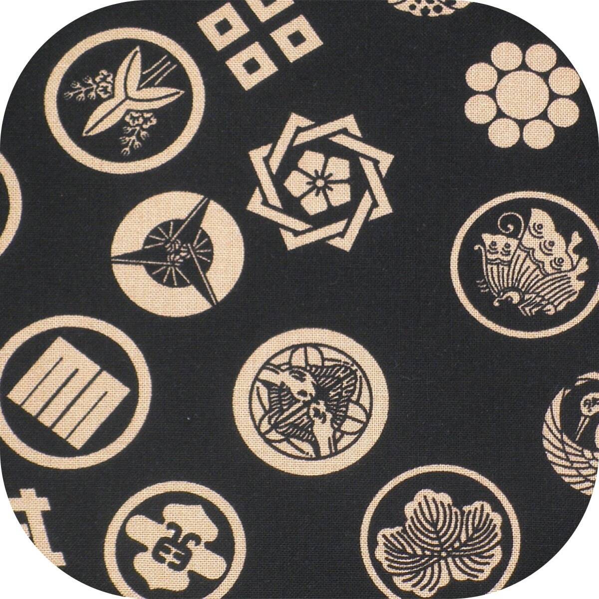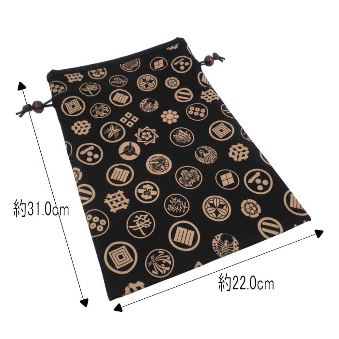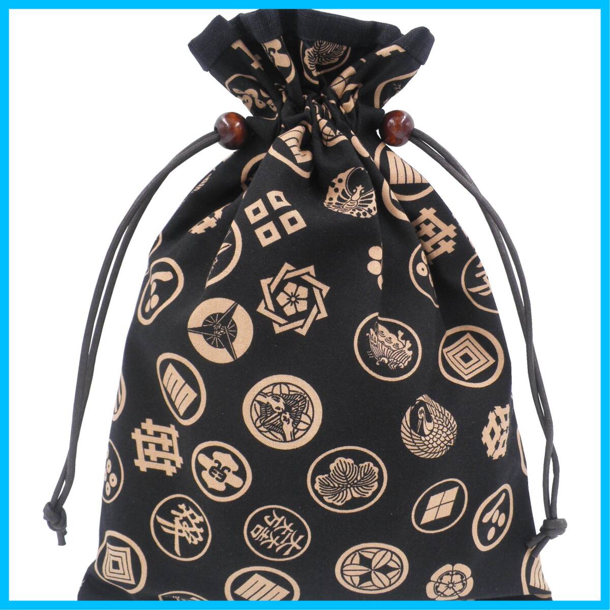手作り工房FUJITA 巾着袋 裏地付き 家紋×黒 ご朱印帳袋 日本製 和小物 和雑貨 男性 浴衣 和小物