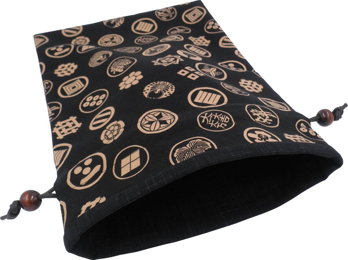 和小物 和小物 浴衣 男性 和雑貨 日本製 ご朱印帳袋 家紋×黒 裏地付き 巾着袋 手作り工房FUJITA