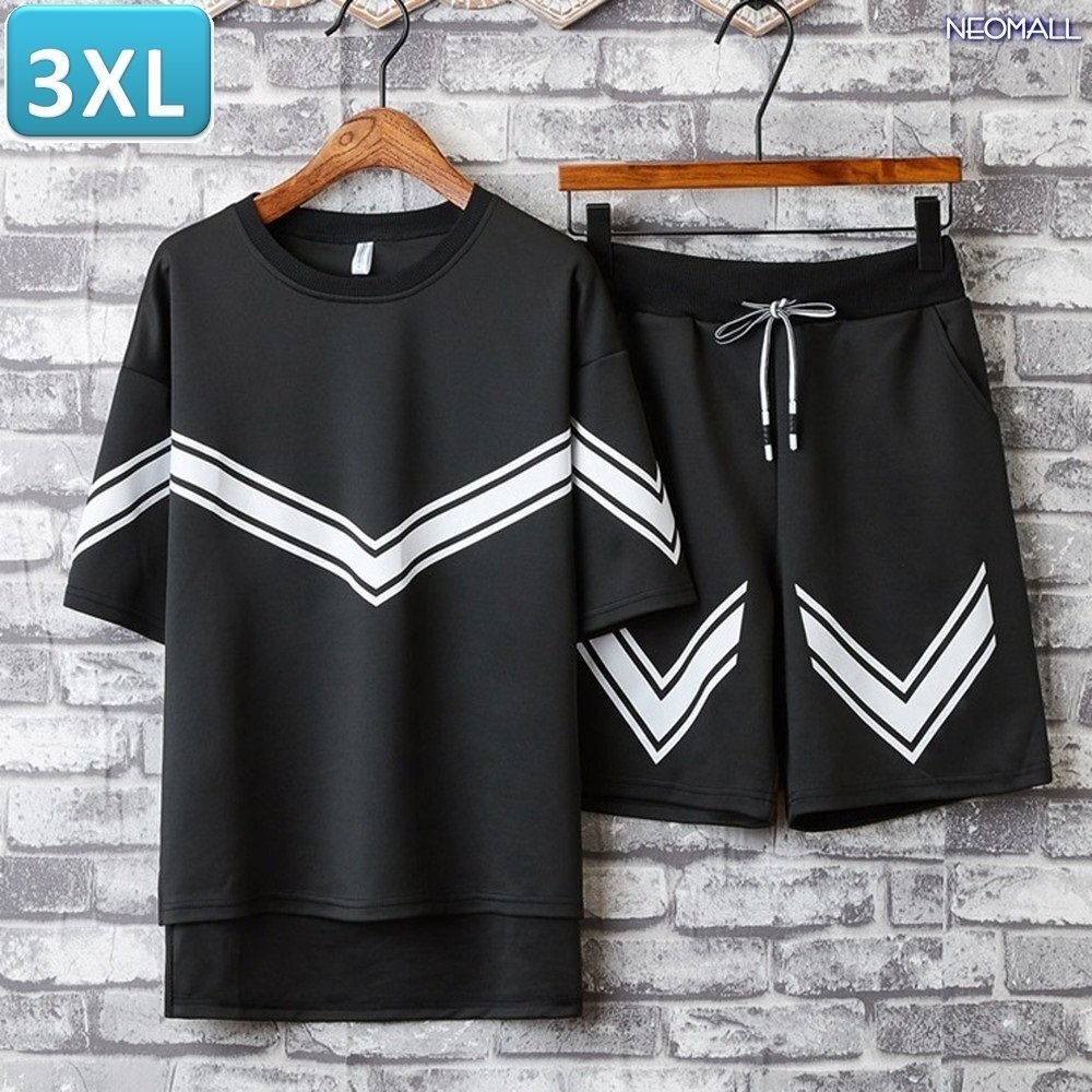 【397】ルームウェア セットアップ ブラック 3XLサイズ 半袖 パンツ メンズ 部屋着 メンズ オフ