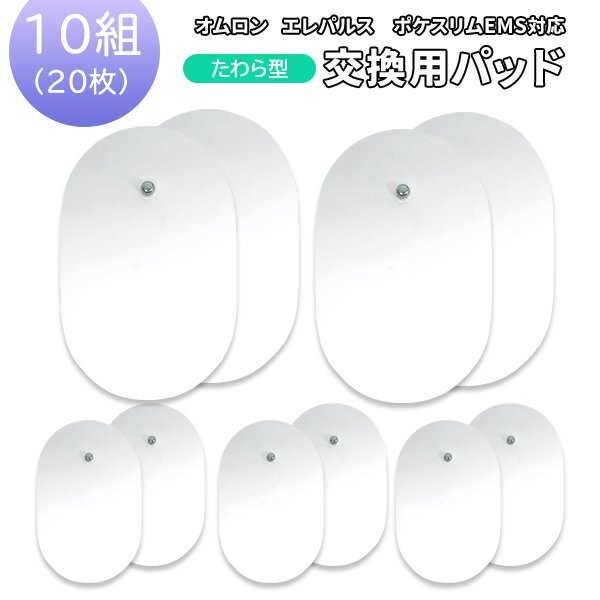 送料無料 ポケスリムEMS 対応 パッド 俵型 10セット 20枚 / たわら オムロン 互換 楕円形 交換用 替え パット 男女兼用 EMS ポケスリム