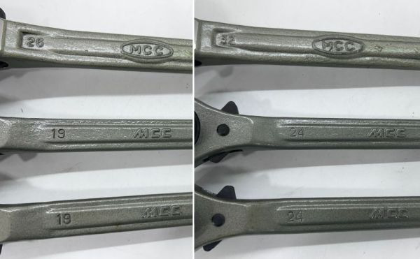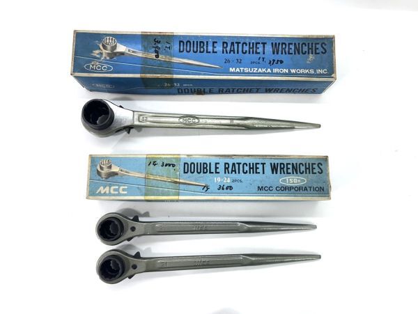 sa☆/ MCC 両口ラチェットレンチ 計3本セット 19×24 2本 / 26×32 1本 箱付き ダブル /DY-5185