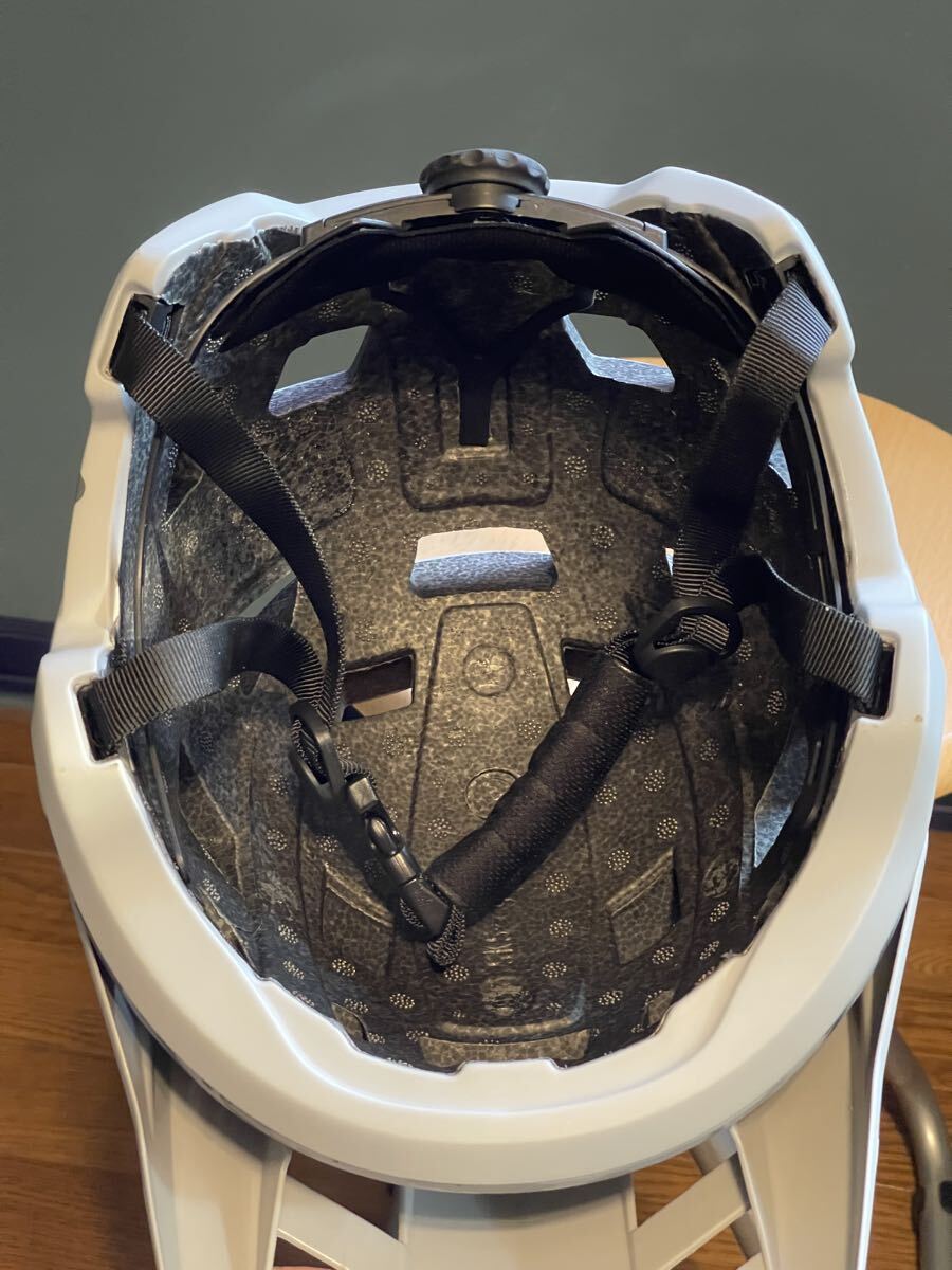 自転車用の軽量ヘルメット中古です。ウイングフォイル(マリンスポーツ)用に被ろうとしましたがほぼ使わずに部屋に飾ってありましたので外装の傷など無く綺麗だと思います。サイズはアジャスターが付いてるので調整できます。私はヘルメットサイズは59,60ぐらいで3回しぐらいしめていました。発送は軽いのでエアキャップに厳重に包みヤマト宅急便着払い(140サイズ以下)でお願いします。