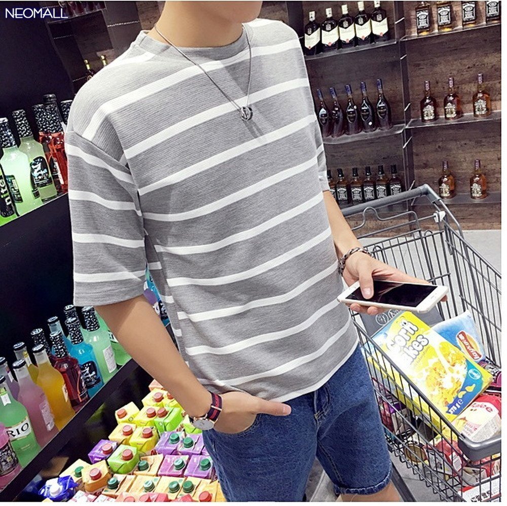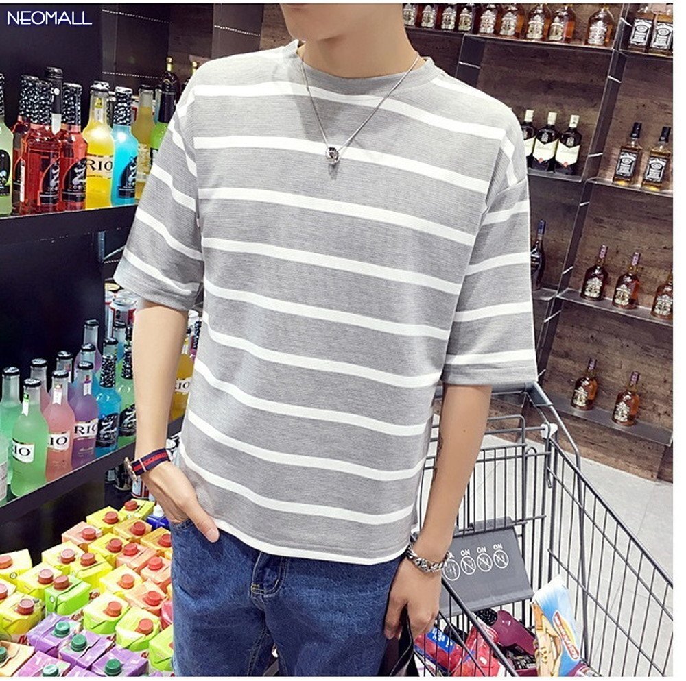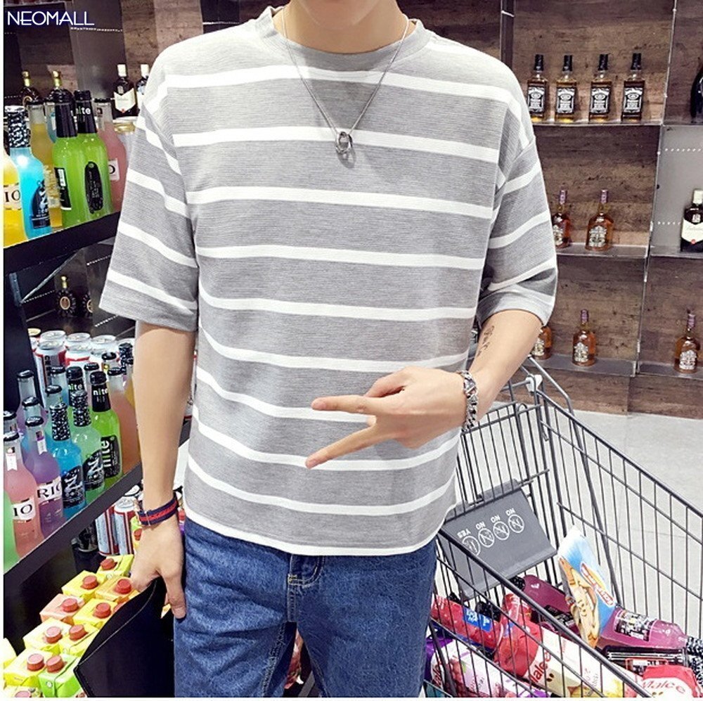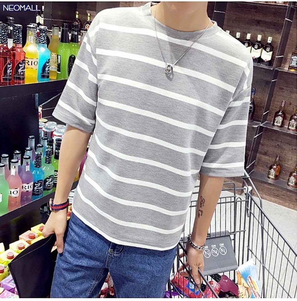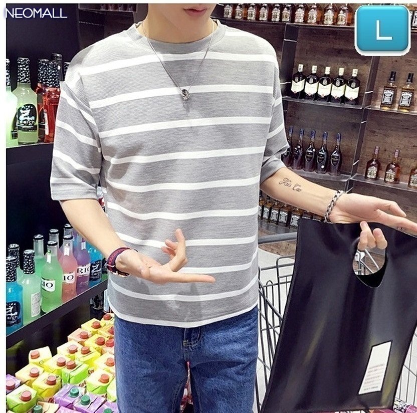春夏にピッタリ ☆ 丸首 半袖 ボーダー Tシャツ【306】グレー Lサイズ トップス お洒落 シンプル 春夏
