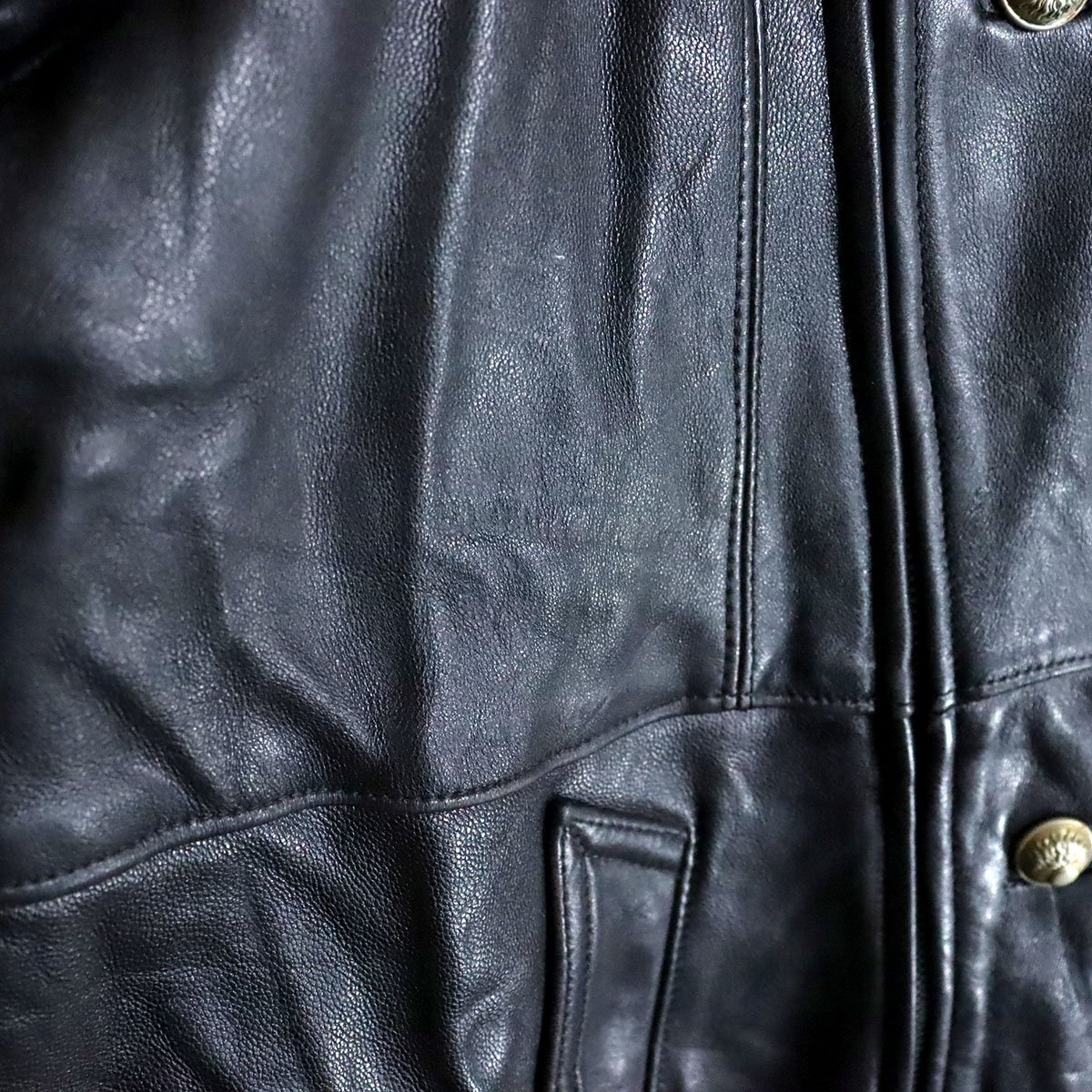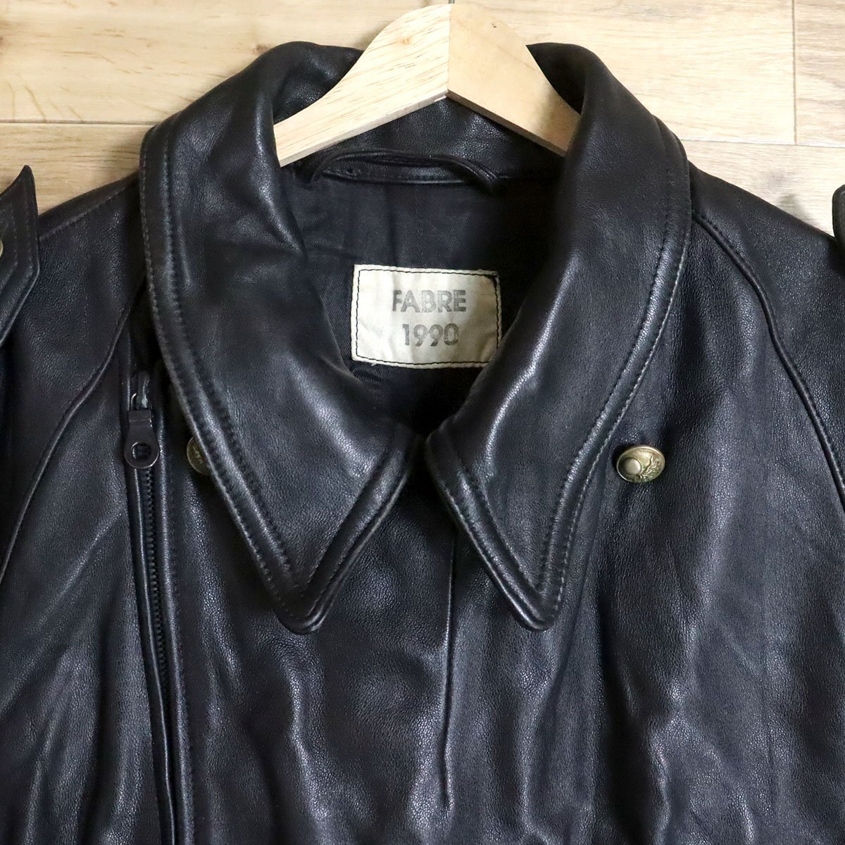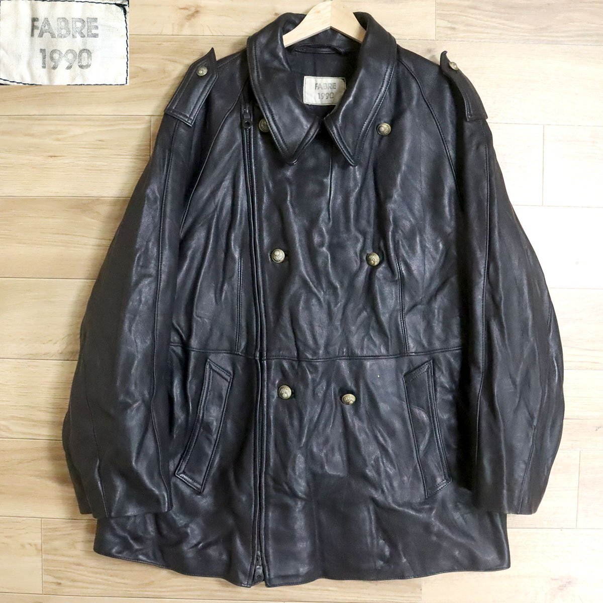 B4S/D9.30-1 90s ビンテージ フランス軍 モーターサイクルジャケット 本革 ダブルブレスト レザーコート バイカー ヴィンテージ