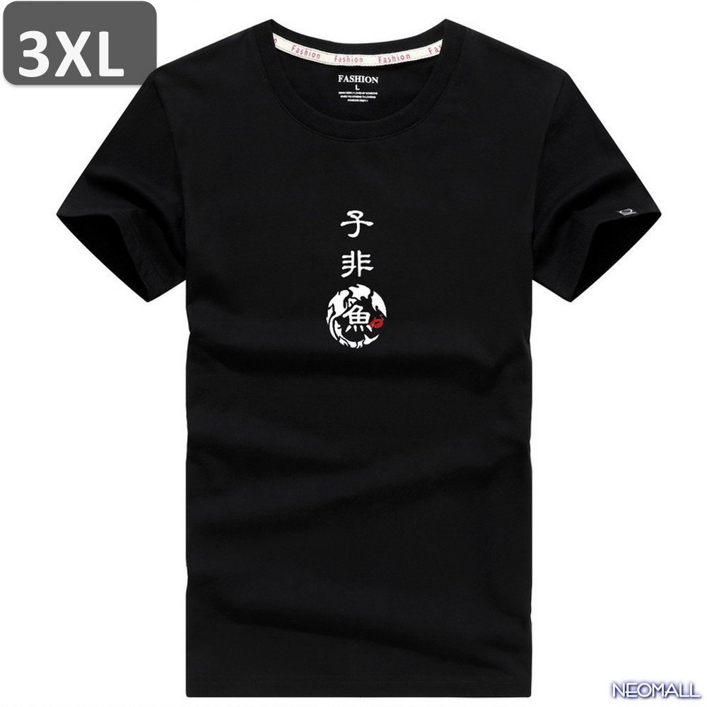 夏にピッタリ ☆ 丸首 半袖 Tシャツ【450】 ブラック 3XLサイズ トップス シャツ シンプル イラスト デザイン 春夏