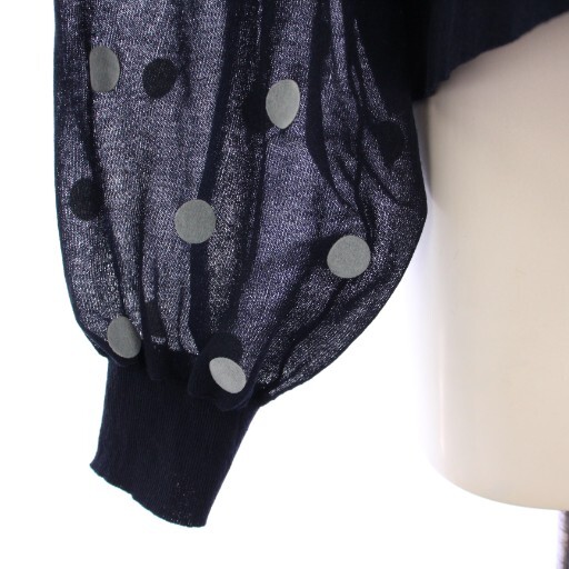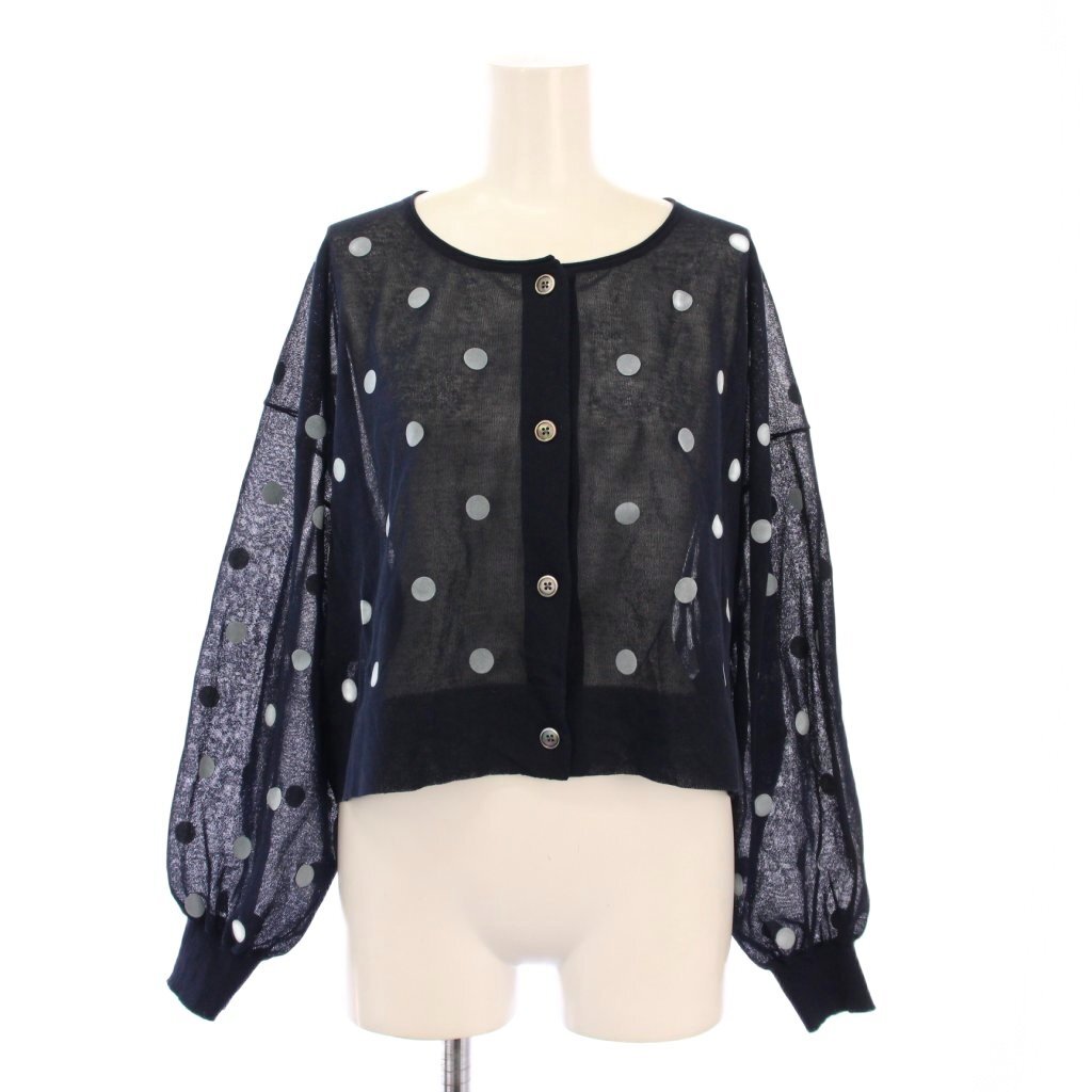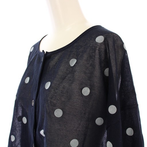 イエナ IENA 25SS FILMYドットカーディガン 長袖 クルーネック ストレッチ ショート丈 シアー シースルー バイカラー F 紺 水色