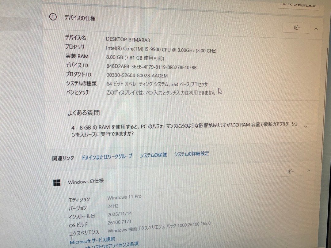| CPU | Intel(R) Core(TM) i5-9500 CPU @ 3.00GHz | 光学式ドライブ | DVDマルチ(読込書込) |