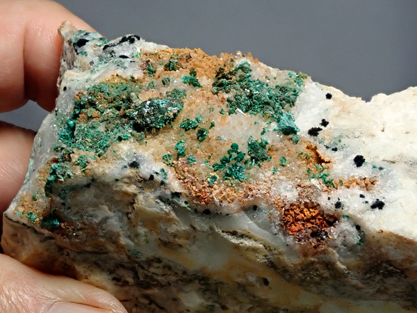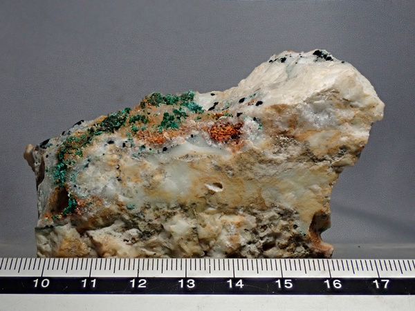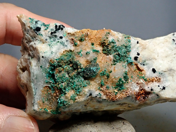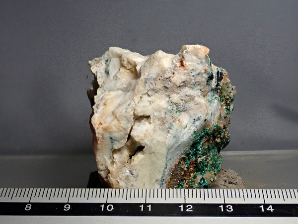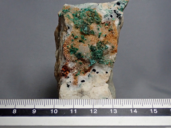 ブロシャン銅鉱は1824年、 A.レビィによってフランスの地質学者ブロシャン・ド・ビリエに因み命名記載されたそうです。銅鉱床の酸化帯に生じる二次鉱物で普通に見られるものです。一緒に産することの多い孔雀石に比べ、産出頻度は多いのに良標本の少ないのも特徴の1つではないでしょうか。この標本はマイコレにしていたものです。サイズ、状態等は画像にてご判断ください。