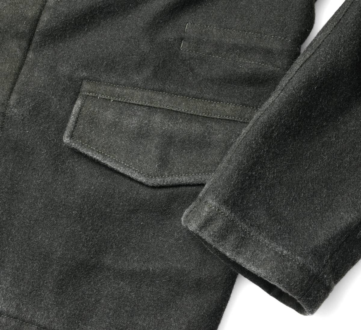 本来完成されたデザインを持つミリジャケは、下手にいじるとそのバランスは悪くなりますが、 本作は元来あるデザインをモダンにアレンジすることで、大人っぽく上手くまとまっております。 エレガントな襟の形状、ポケットやフラップのバランス、配置など完璧。スマート過ぎずタフ過ぎずの絶妙塩梅。 ミニマムなデザインでモードな美観を醸し、大人が思い描く理想のデザインを実現。素材だけでも きっちり線引きしておりますが、デザインにおいても巷のソレとは全くの別物です。