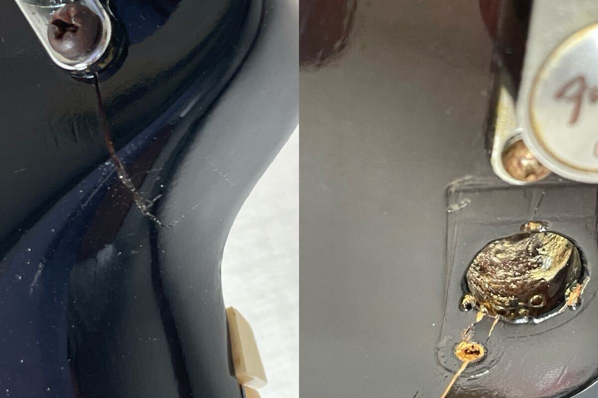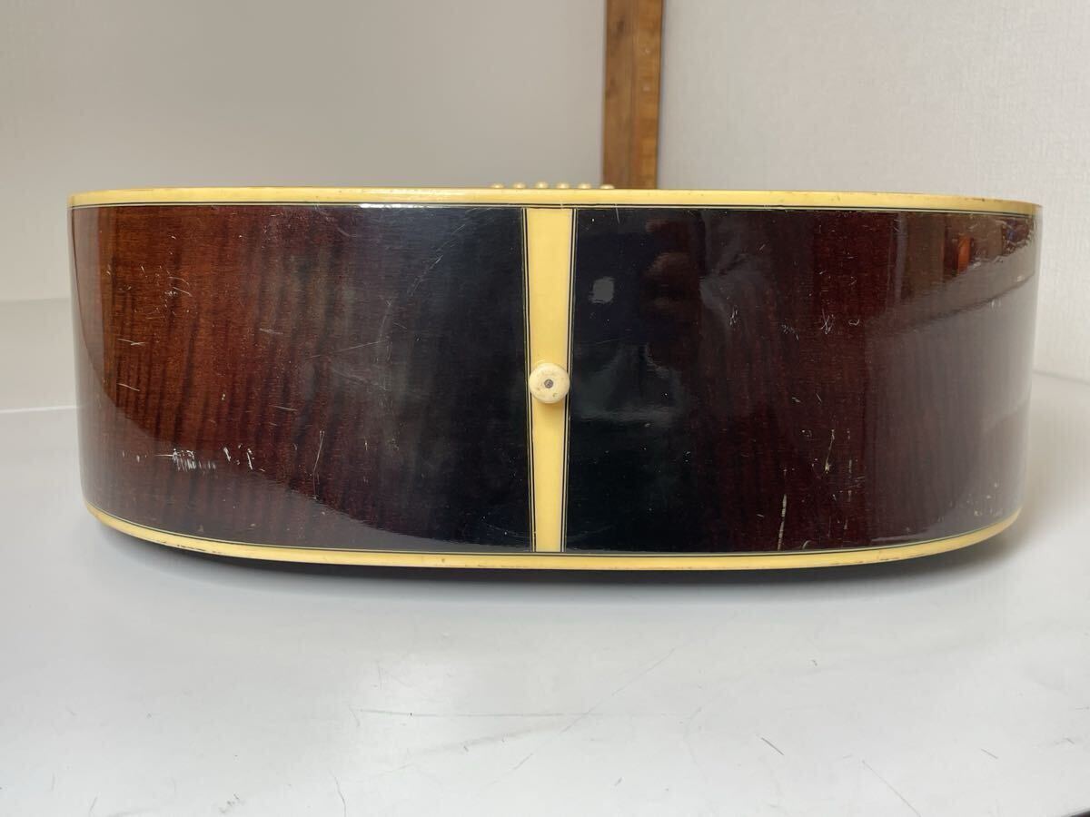 | 商品説明 | ※説明文中にも画像ございます。 ご覧いただきありがとうございます。 ◎商品詳細 ・複数の打痕や傷や汚れがあります。ヘッドの裏側の1番下のペグの下あたりに亀裂のような物があり、ペグを外した穴までは亀裂が届いていないですが、全体的に状態は悪いので画像をよく見てご判断ください。 ・前所有者が喫煙者のため、喫煙環境で使用されていた物になります。 かなり拭き掃除はしましたが、指板からはまだヤニ汚れのようなものが拭いたら出るかと思います。拭き掃除後、指板にはレモンオイルを塗布してます。指板とサウンドホール以外の部分はヤニ汚れが出ないくらいまで掃除してます。ペグも外して掃除しました。 ・サウンドホール内は未清掃となり、サウンドホール内の底面のストラップピン付近にはホコリが見受けられます。画像でご確認ください。 ・塗装の剥げや、塗装のひび割れのようなダメージなどもございますので画像でご確認ください。 ・ヘッドの角のダメージが1番目立つかと思います。画像でご確認ください。 ・フレットの残り具合や、ネックの反り具合などは詳しくないため、画像でご判断ください。 ・弦は清掃のために外しましたので、弦が無い状態でのお届けになります。落札者様で弦を新たにご用意ください。 ・ネジ類など鉄製パーツにはサビが見受けられますので画像でご確認ください。 ・その他、外観については画像でご判断ください。 ・大阪から佐川急便での発送を予定しているのですが、梱包時のサイズが170サイズを少し超えると思われるので、180サイズの予定をしておいてください。佐川の荷受けの担当者さんの加減で170サイズで荷受けしてもらえる可能性もございますので着払いで発送させていただきます。 ・日程調整後、大阪市中央区に直接引き取りも可能です。 ◎サイズ ・全長約107.5cm(ストラップピン含む)×幅約40cm×厚み約10cmから約12.4cm(ブリッジ等含まない) ・ナットからサドルまで約65cm ・ナット幅約44mm |