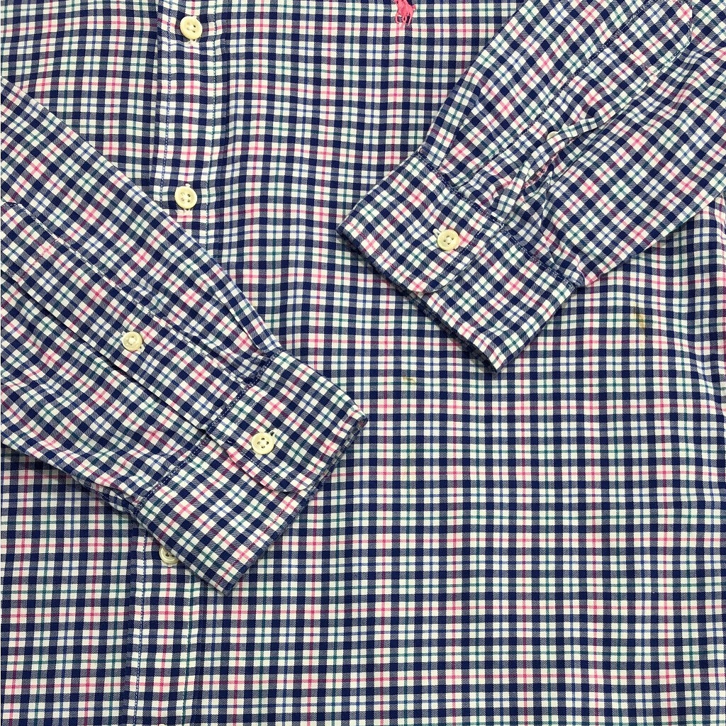 | 【商品管理番号】 U9648 【ブランド】 RALPH LAUREN/ラルフローレン 【サイズ】 M 【実寸サイズ】 肩幅:約47cm 着丈:約80cm 身幅:約59cm 袖丈:約63cm 【主な素材】 表地 : コットン 【色】 マルチカラー 【仕様】 ボタンダウン ギンガムチェック 【状態】 汚れ:腹部 | |||