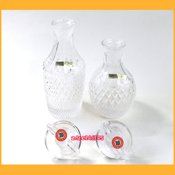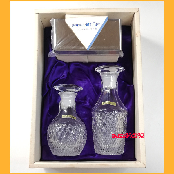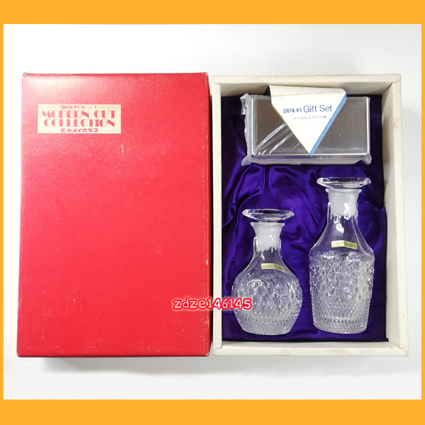 モダンカットコレクション クリスタル24 5点セット * 醤油さし (小) 大きさ:高さ12.5cm 最大幅7cm * ソースさし (大) 大きさ:高さ15.3cm 最大幅6cm * 塩・コショウ入れ 2個 大きさ:高さ6.5cm 最大幅5.5cm * 塩・コショウトレイ 大きさ:高さ1.8cm 最大幅11.5cm 1970年代後半~1980年代初頭の物と思われます。 |