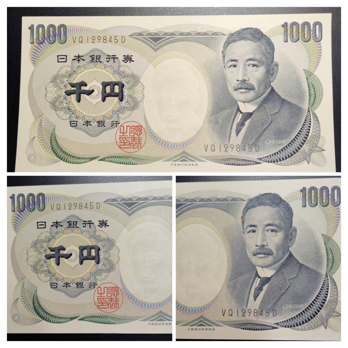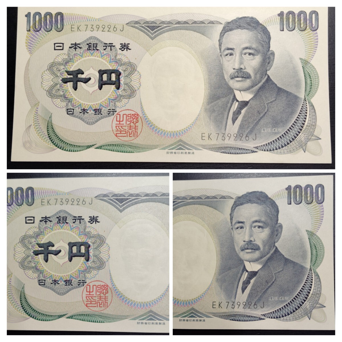未使用 ピン札シミ焼け無し 日本銀行券 大蔵省印刷局製造 、財務省印刷局製造 夏目漱石 千円紙幣各1枚になります