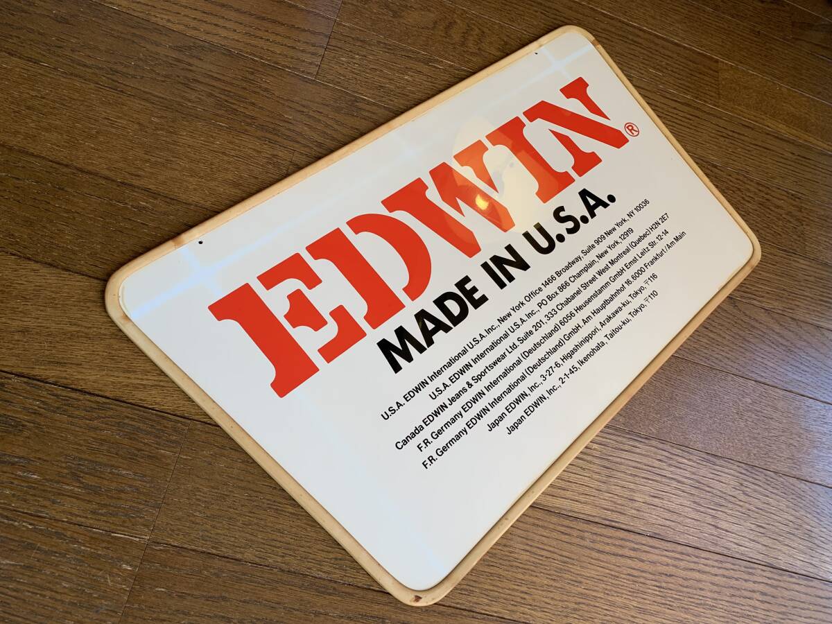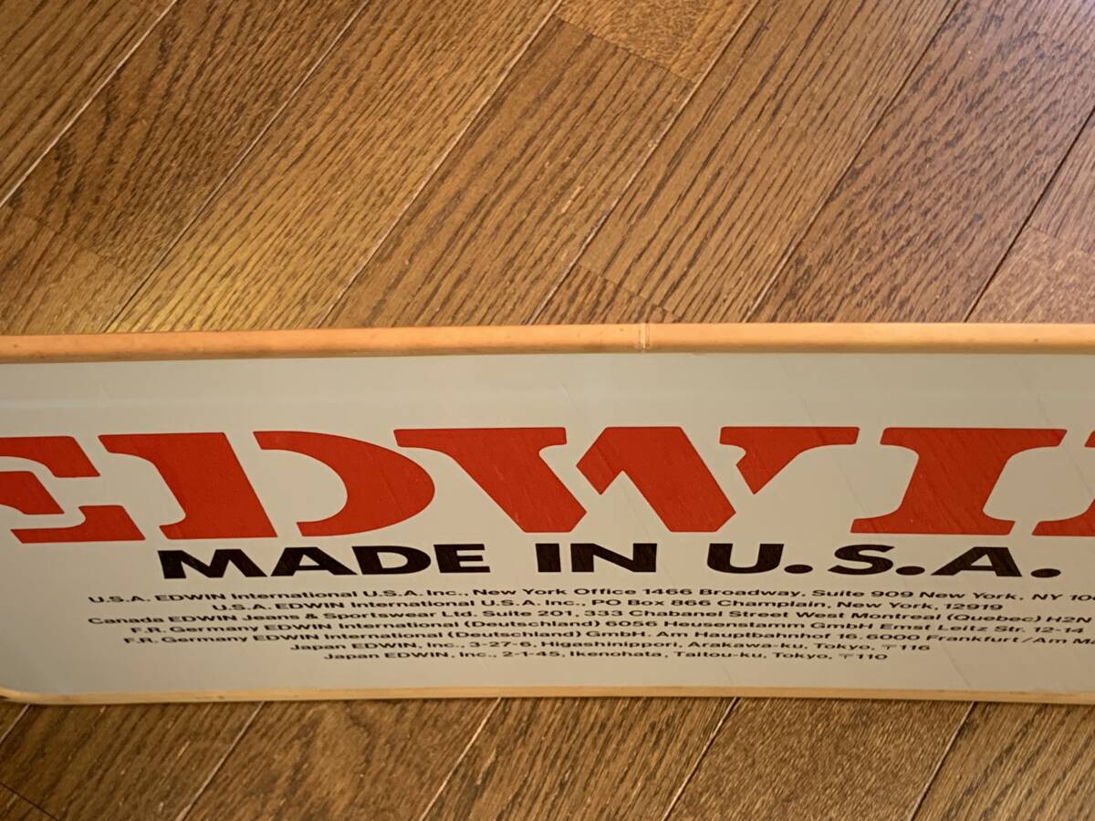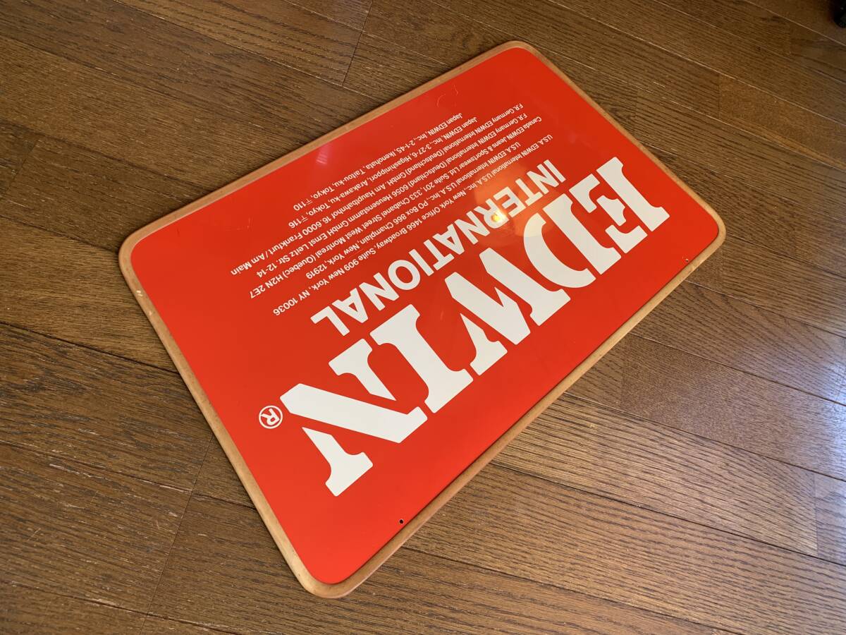 大変貴重で希少なEDWINショップの看板です。サイズは縦30.5cm横53cmです。年代に伴う僅かながらの自然変色が見られますが、それが逆にアンティークとしての雰囲気と風格が感じられる逸品です。勿論、代理店のみの非売品で入手は困難です。お譲り致しますのは画像の物がすべてになります。NCNR厳守、商品到着後の速やかな受け取り連絡をお約束下さい。尚、勝手を申しますが落札後24時間以内のご連絡、簡単決済は2日以内でお願い致します。御無理を申しますが宜しくお願い致します。 ※※※商品の受け取り連絡につきましては最後までスムーズなお取引を希望致しますので各営業所到着日(配達日)より営業所保管を含みまして24時間以内でお願い致します。 24時間経過しても商品の受取連絡を頂けない場合はいかなる理由がございましても評価変更をさせて頂きますので留守の多い方の御入札はお控え下さい)。以上、御了承の上、御入札をお願い致します。※※※