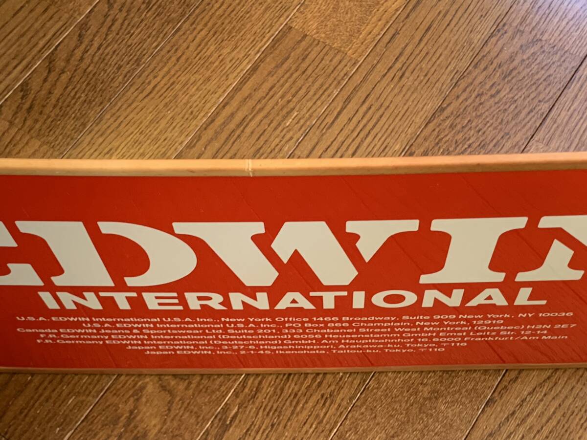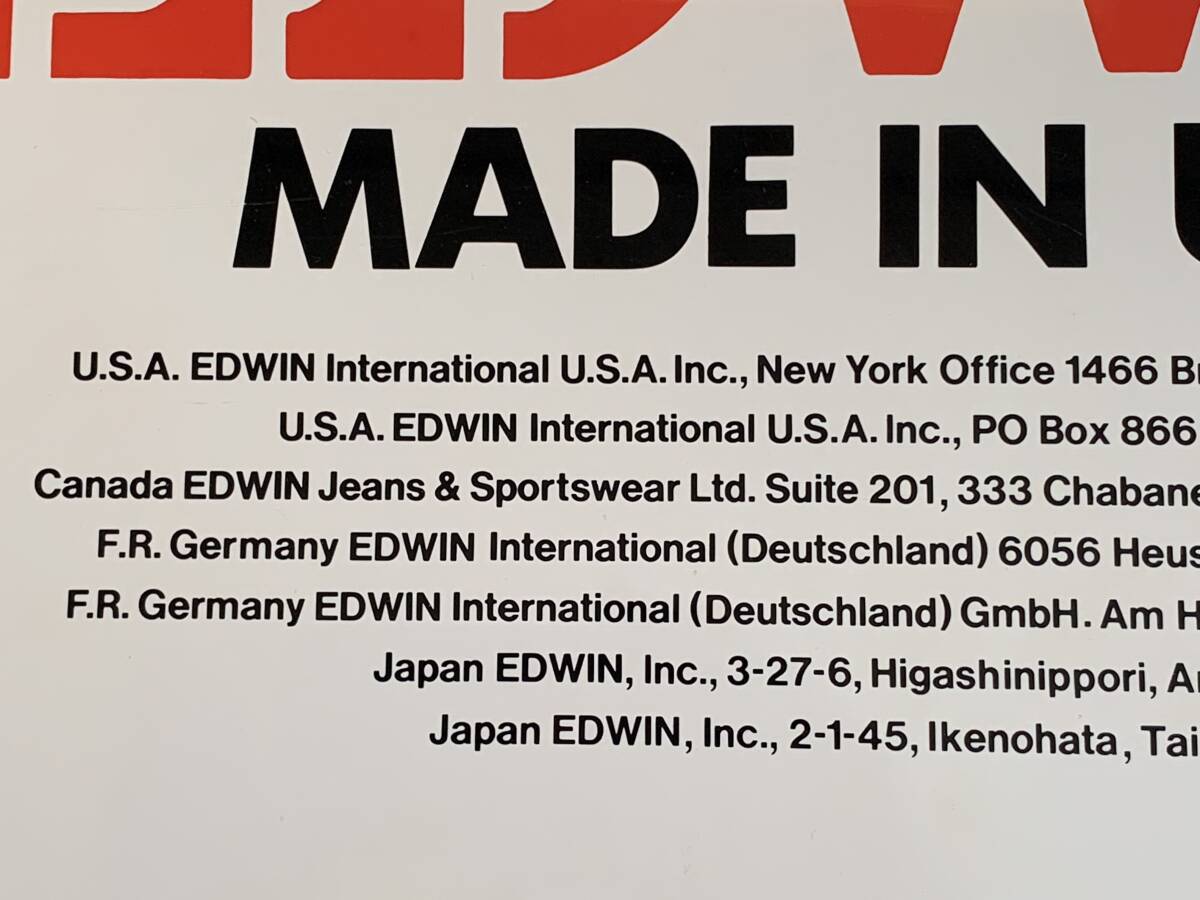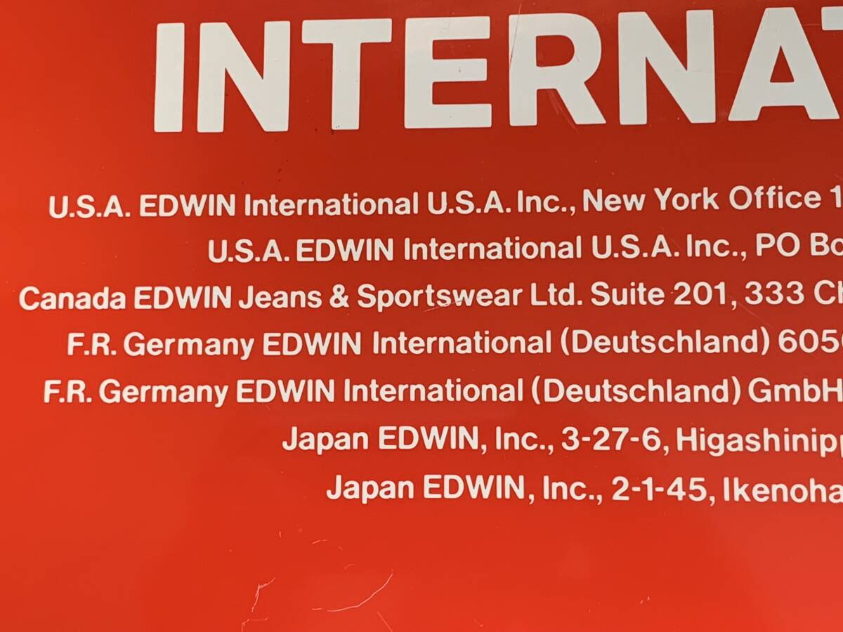 大変貴重で希少なEDWINショップの看板です。サイズは縦30.5cm横53cmです。年代に伴う僅かながらの自然変色が見られますが、それが逆にアンティークとしての雰囲気と風格が感じられる逸品です。勿論、代理店のみの非売品で入手は困難です。お譲り致しますのは画像の物がすべてになります。NCNR厳守、商品到着後の速やかな受け取り連絡をお約束下さい。尚、勝手を申しますが落札後24時間以内のご連絡、簡単決済は2日以内でお願い致します。御無理を申しますが宜しくお願い致します。 ※※※商品の受け取り連絡につきましては最後までスムーズなお取引を希望致しますので各営業所到着日(配達日)より営業所保管を含みまして24時間以内でお願い致します。 24時間経過しても商品の受取連絡を頂けない場合はいかなる理由がございましても評価変更をさせて頂きますので留守の多い方の御入札はお控え下さい)。以上、御了承の上、御入札をお願い致します。※※※
