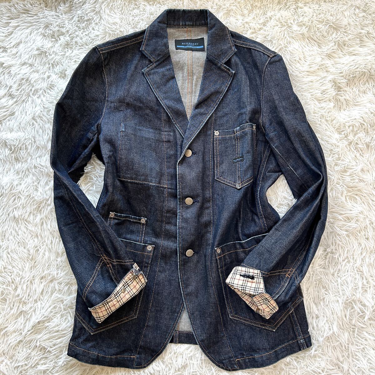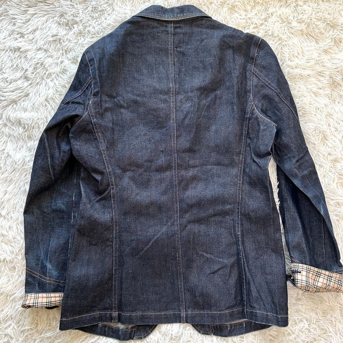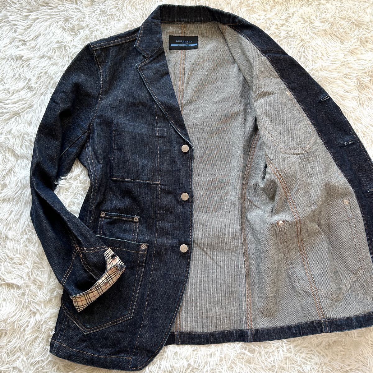 希少 BURBERRY BLUE LABEL バーバリー ブルーレーベル デニム テーラードジャケット メンズ デニムジャケット インディゴ染め M相当