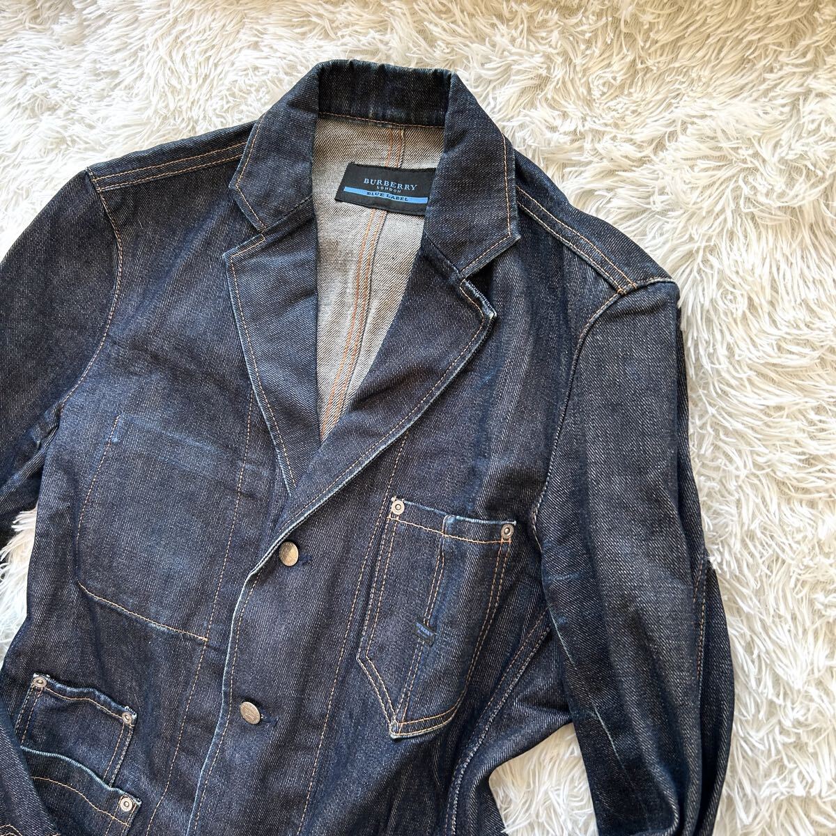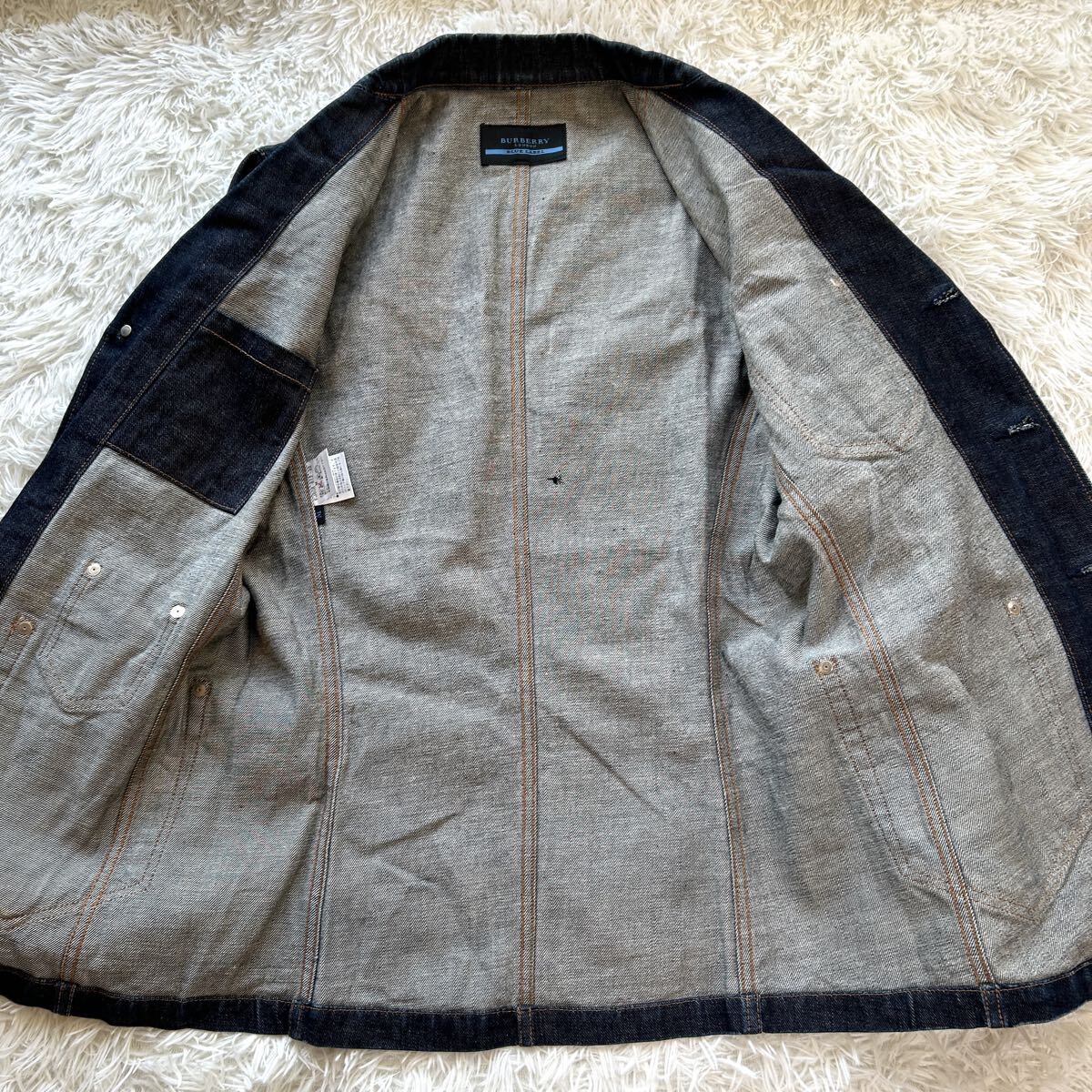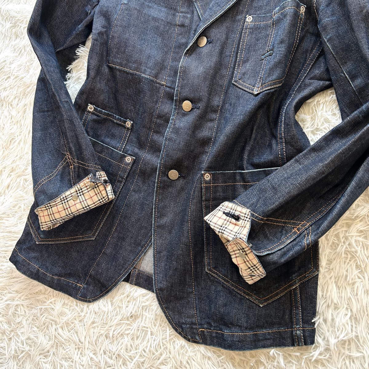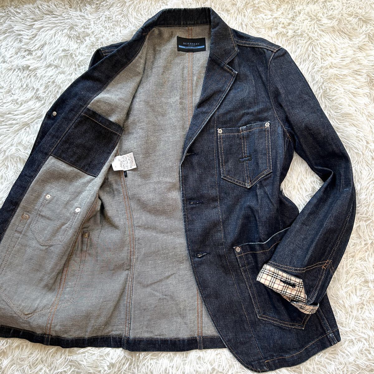 希少 BURBERRY BLUE LABEL バーバリー ブルーレーベル デニム テーラードジャケット メンズ デニムジャケット インディゴ染め M相当