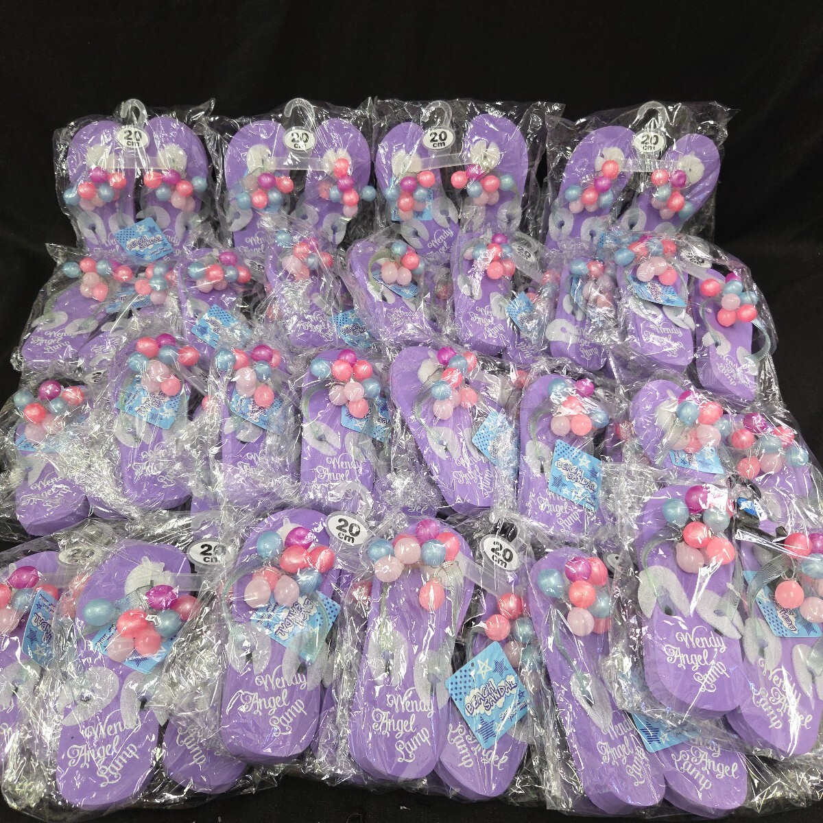 ★未使用保管品 キッズサンダル 25足まとめ売り 女の子 ビーチサンダル 20cm パープル 飾りつきサンダル 282-53