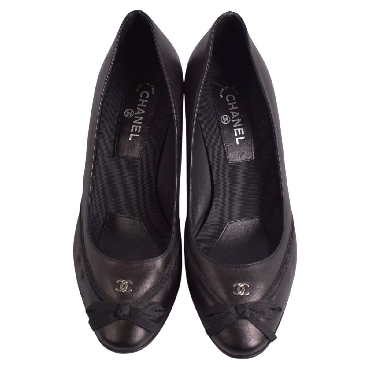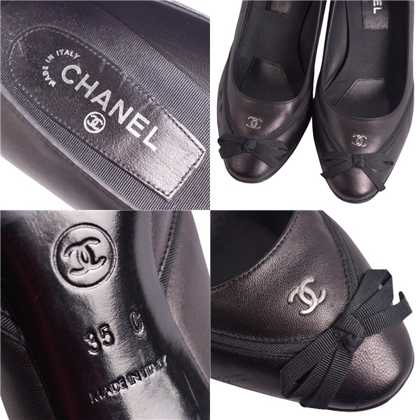 | 美品 シャネル CHANEL パンプス リボン ココマーク レザー ヒール シューズ 靴 レディース イタリア製 35C ブラック |