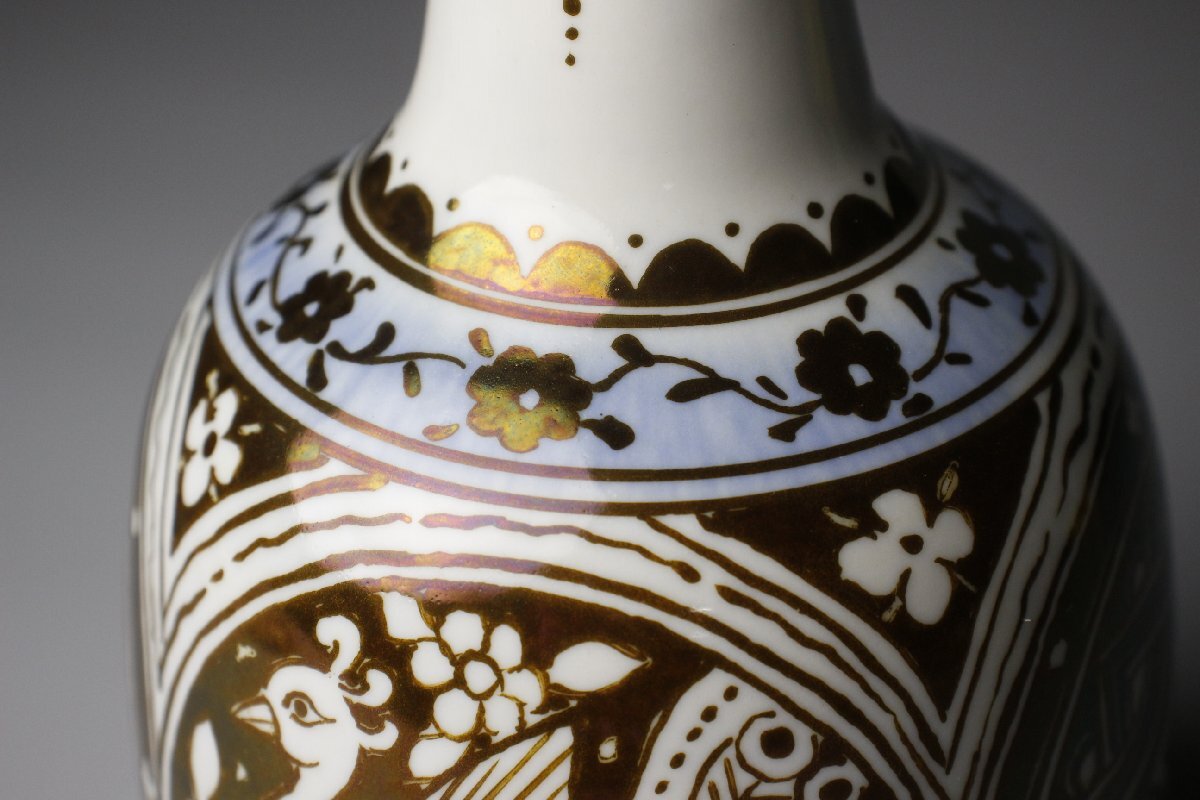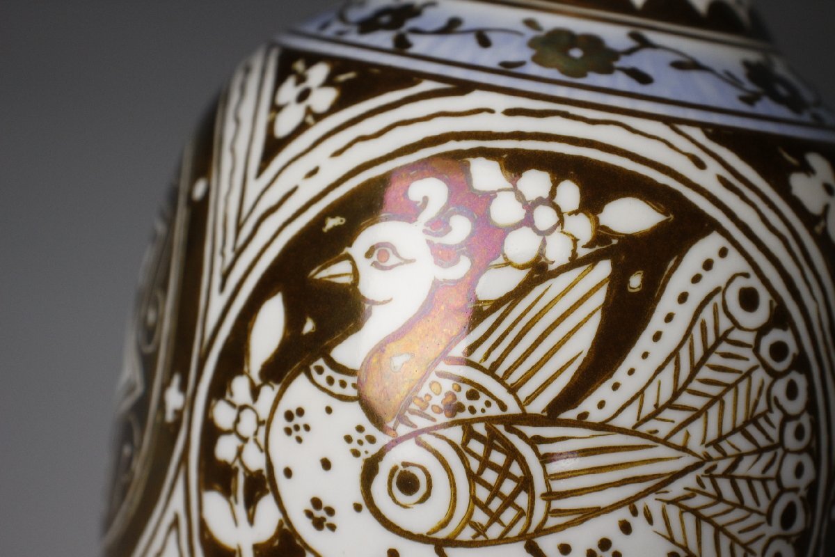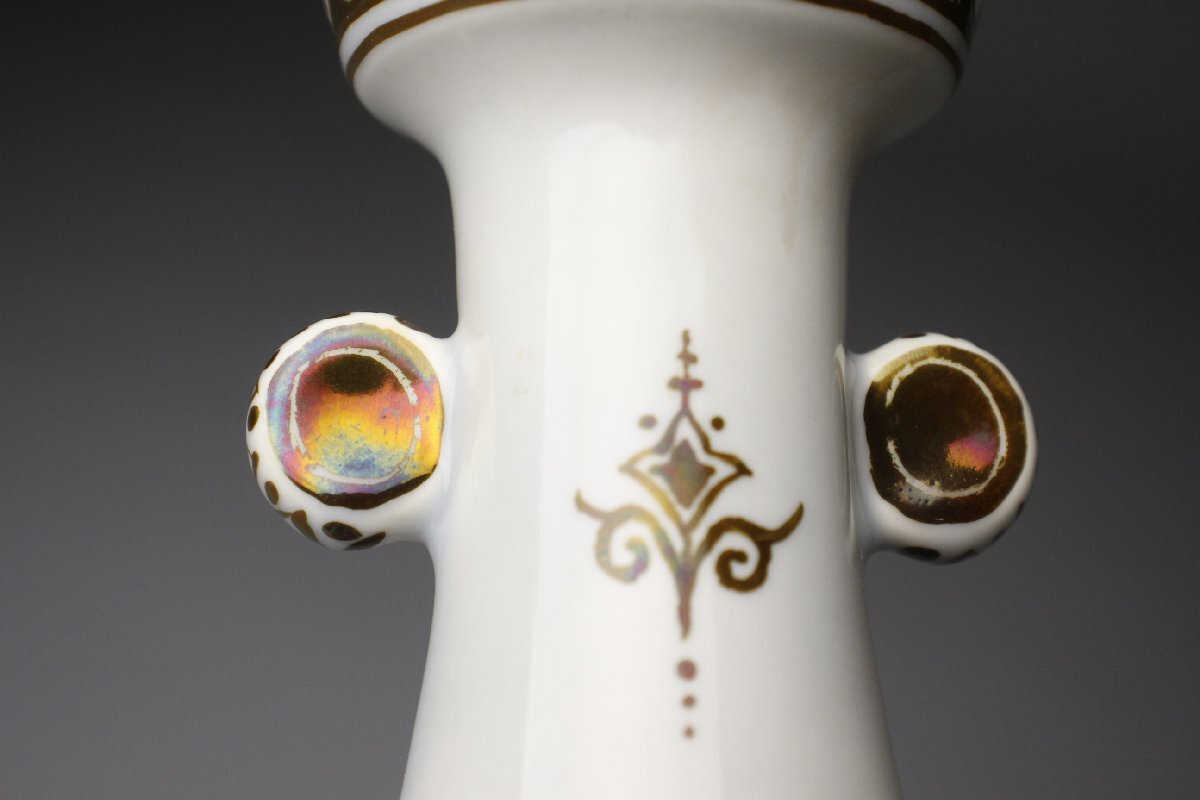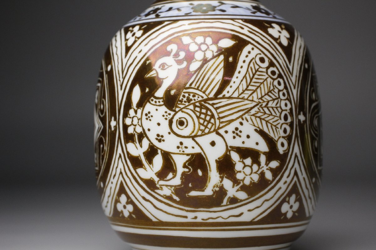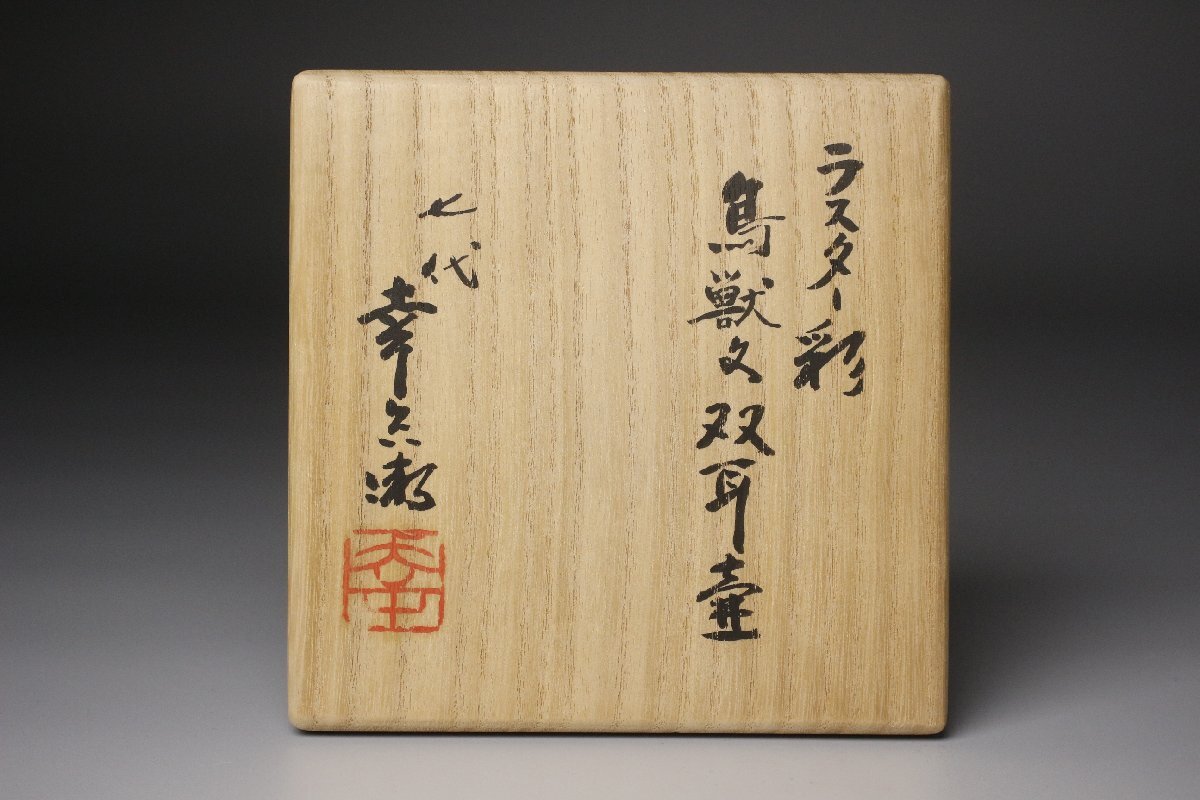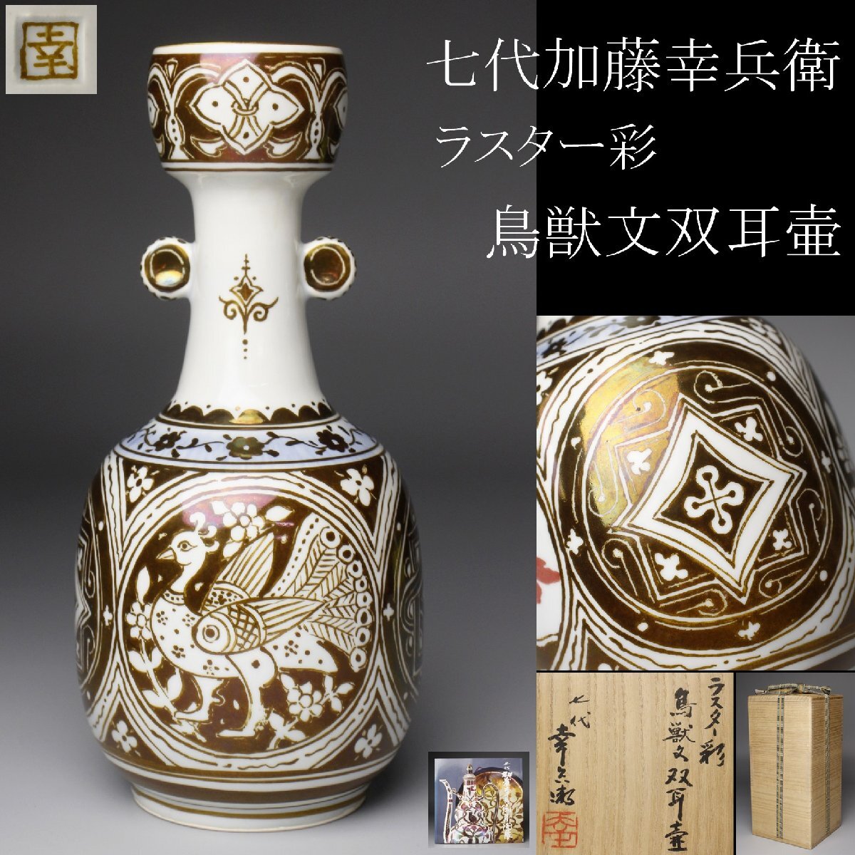 * * * 商品詳細 * * * ここでしか出逢うことのできない唯一の美をご紹介させて頂きます。 七色に光り輝く神秘的な美しさを誇る七代 加藤幸兵衛による ラスター彩双耳壷のご紹介です。 その輝きは神々しく、宝石にも劣らぬ煌びやかさで見る者を魅了します。 絵付も繊細で素晴らしく、現代的な図案も個性的です。 端正な造形も素晴らしく、隙を感じさせない高い完成度をもって仕上げられています。 幻想的なラスター彩に魅せられる逸品をこの機会に是非お手元にてご堪能下さい。 七代 加藤幸兵衛 加藤卓男の長男 日展、朝日陶芸展でそれぞれ最高賞を受賞するなど各陶芸展で高い評価を受け、 人間の根源・本質をテーマに、鋭い現代感覚の作品を制作しています。 また近年は、加藤卓男のペルシア陶技を継承した作品を制作しています。 また現在、社団法人 美濃陶芸協会の会長として、美濃陶芸振興のため活動しています。 ■商品内容/壷、共箱、図録 ■サイズ/横9cm×高21cm 箱:横12.5cm×高25.5cm×奥行12.5㎝ ■状態/スレ、小キズがありますが目立つものはありません。 箱にスレ、小キズがございます。 ※写真にてご確認、ご了承の上ご入札下さい。 ![]() Yahoo!かんたん決済 * * * 発送詳細 * * * 入金確認後3営業日以内に発送致します。 ※直接引き取りも可能です。 60~160サイズにつきましては 佐川急便、ゆうパックのどちらかで発送いたします。 ゆうパック発送の場合、弊社の発送日から追跡サービスに問合せ番号が反映されるまで 約1日ほどお時間がかかりますのでご了承下さい。 * * * 注意事項 * * * 運送中の破損があった場合は速やかに当社までご連絡下さい。 保険を利用するのに受取連絡後に運送会社による現場での破損状況確認が必要となります。 勝手に返送されますと保険の適用外となりますのでご注意ください。 * * * * * * お問い合わせ:082-236-8669 |