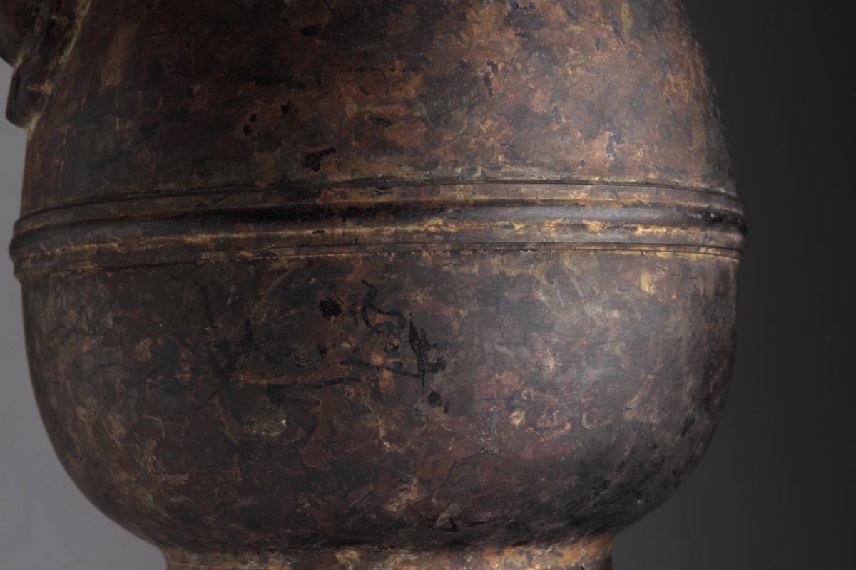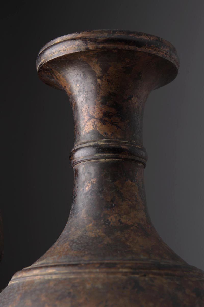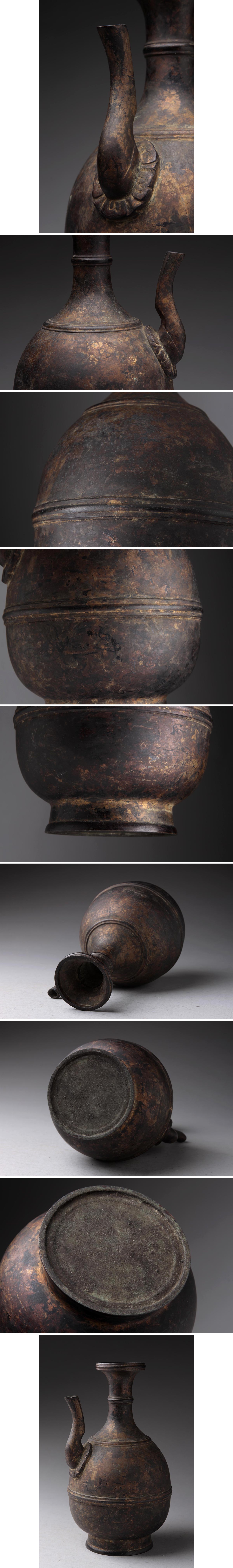 | ◆ 時代 古銅 鍍金 布薩形水瓶 高21.5cm / 重1kg・金銅浄瓶・鍍金水注 古金工 仏教古美術 ◆