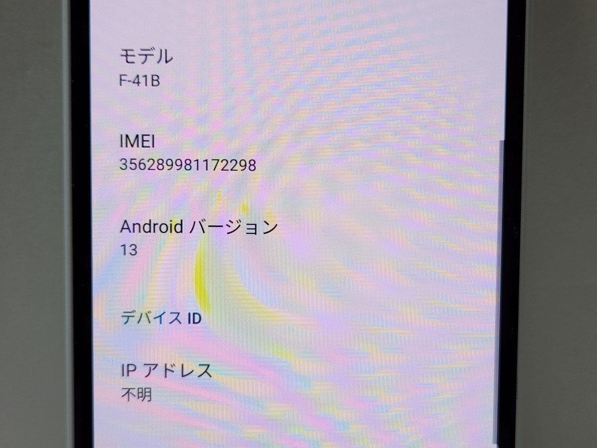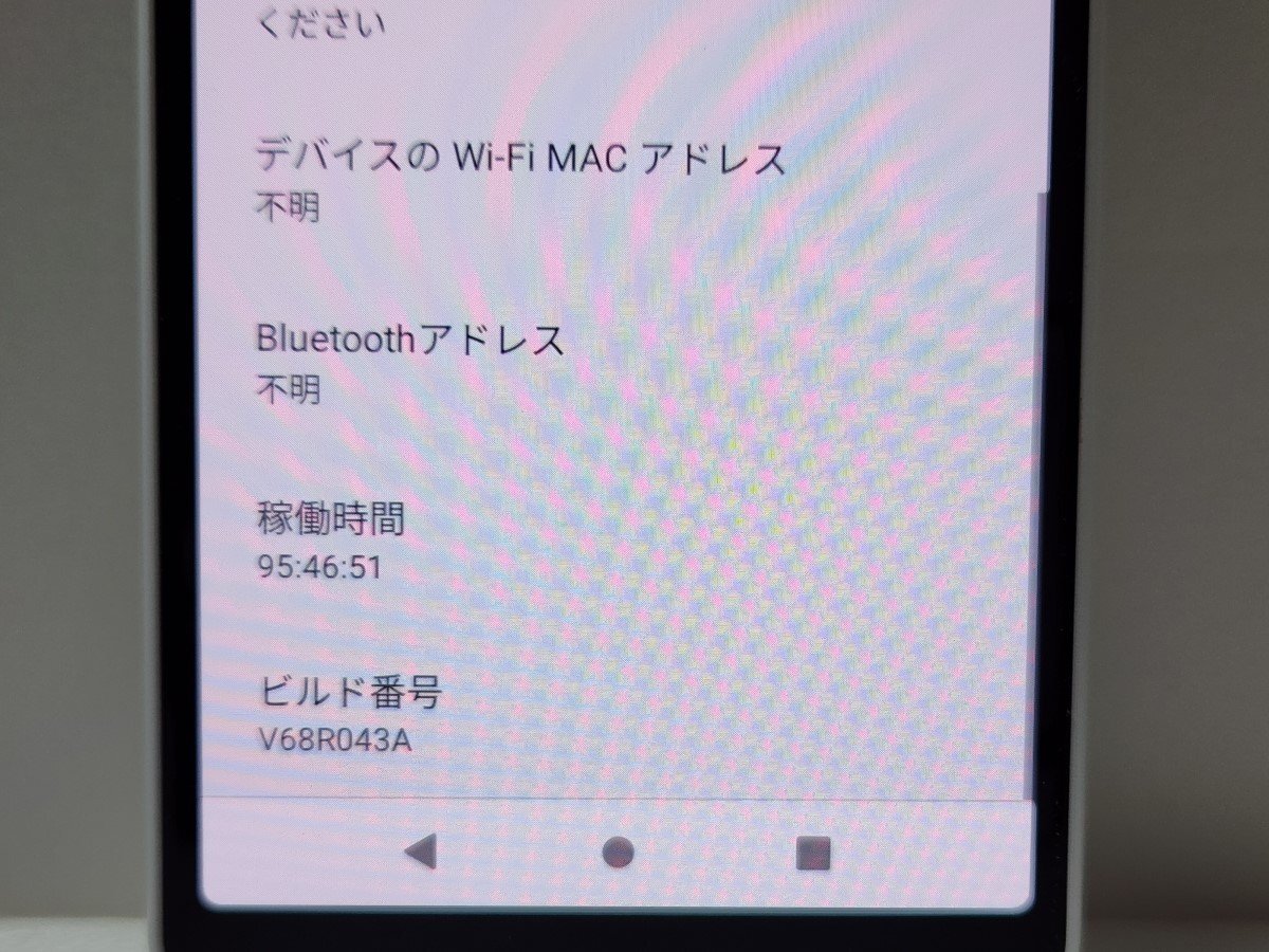 【外装状態】: B 背面パネルとフレーム部分に小傷が付いています。液晶に光に当ててわかる傷が見られ、薄くピンク色に焼け付いています。SIMトレーがありません。