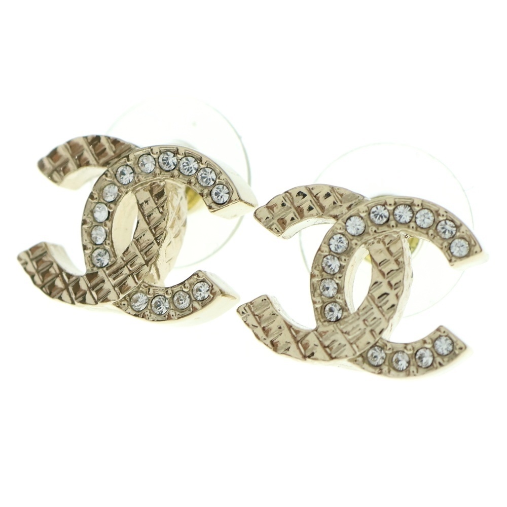 CHANEL シャネル ココマーク ラインストーン ロゴピアス シャンパンゴールド GP