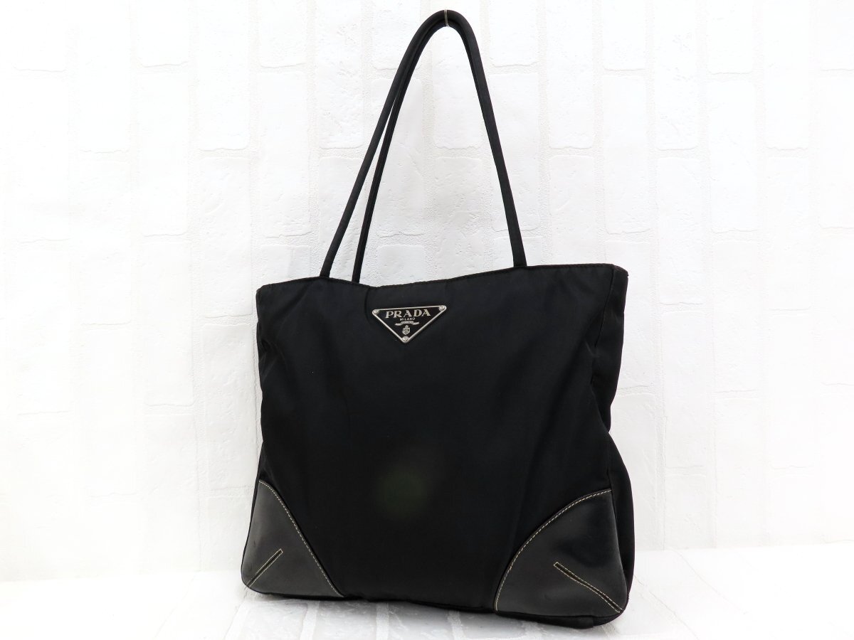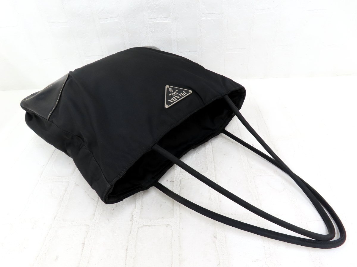 ◆美品◆PRADA プラダ◆ナイロン カーフ レザー 本革◆トート ショルダー バッグ◆ブラック シルバー金具◆イタリア製◆肩掛け◆A14298
