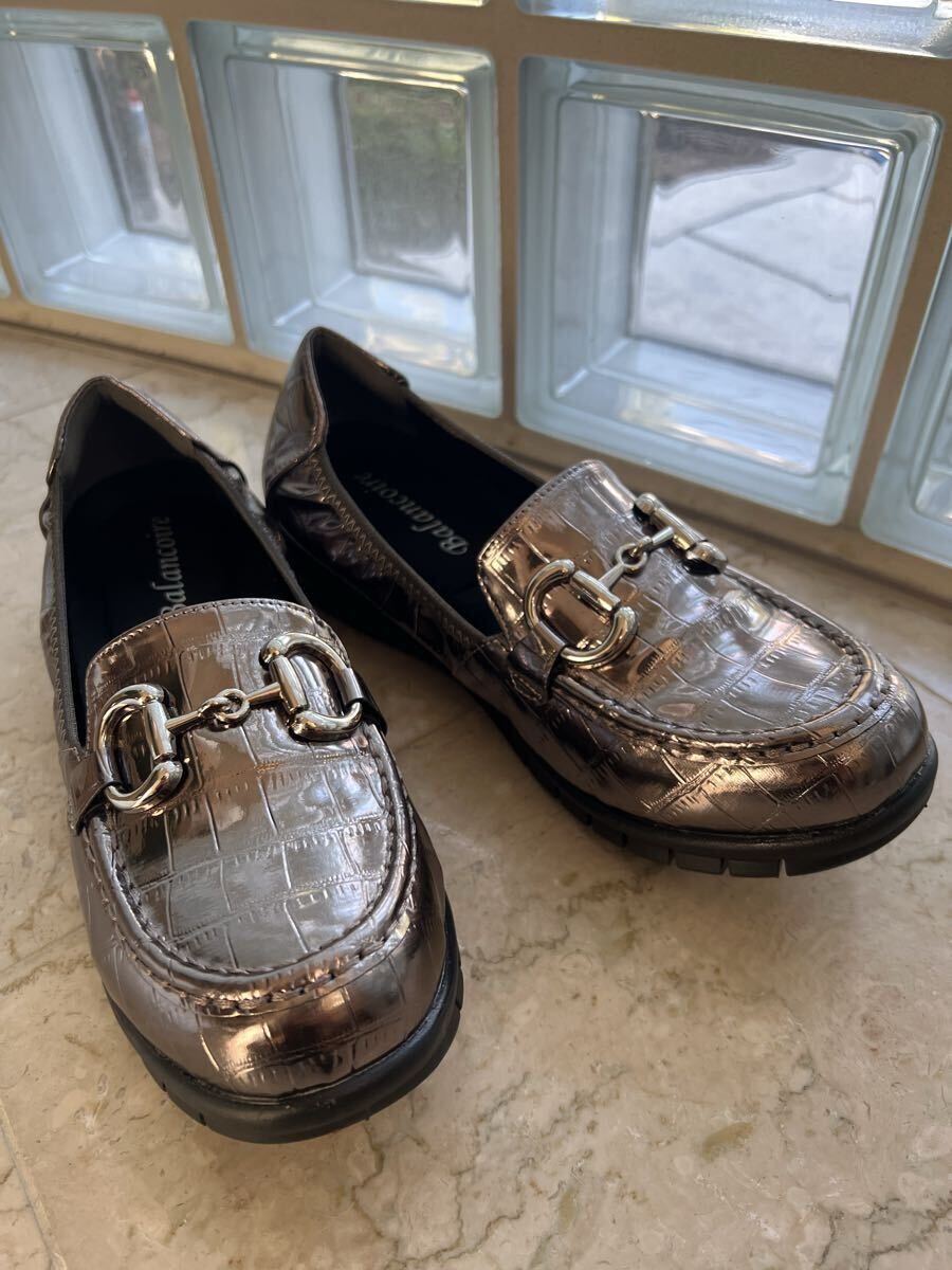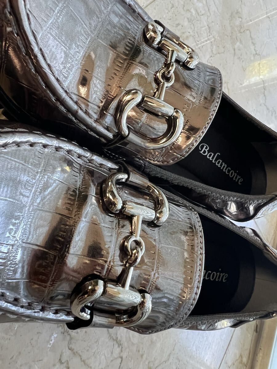 ブランコワールBalancoire★メタリック クロコ型押し ビットローファー 24.5未使用♪防水 撥水 超軽量です。