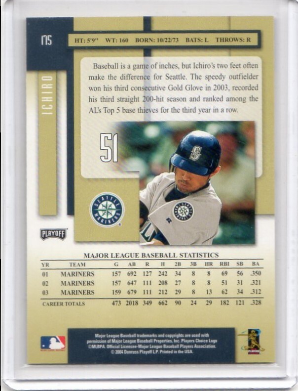 2004DONRUSS PLAYOFF PRESTIGE #175 イチロー・ファンの方、是非どうぞ! |
