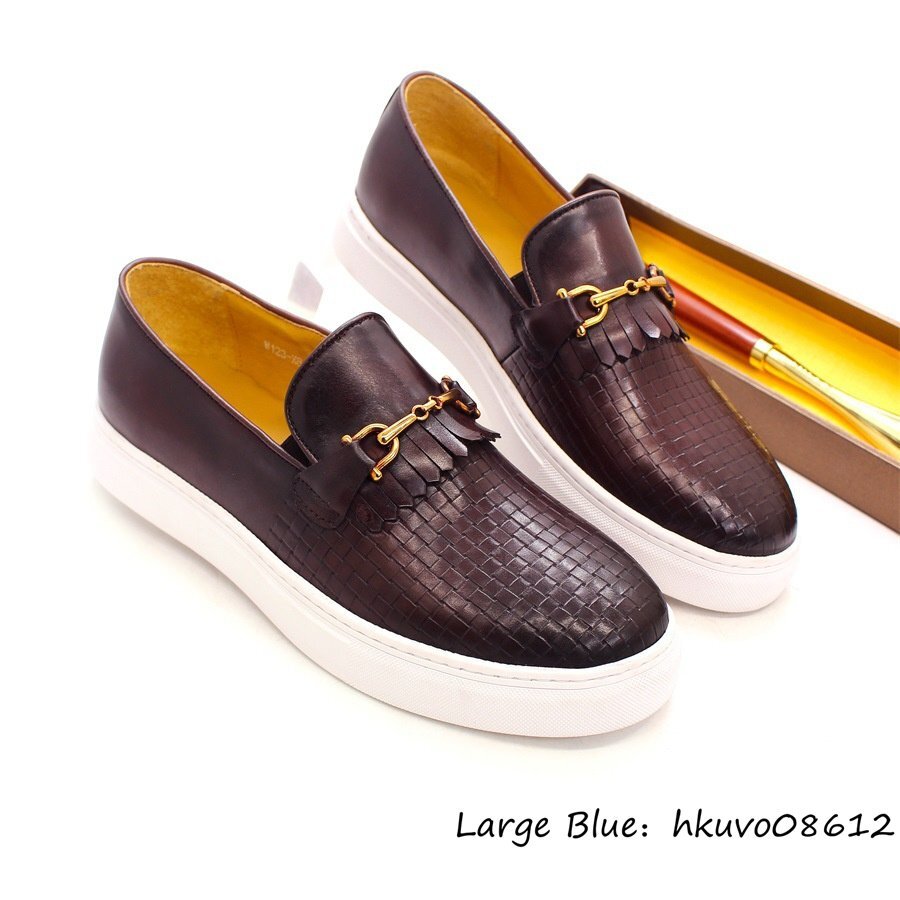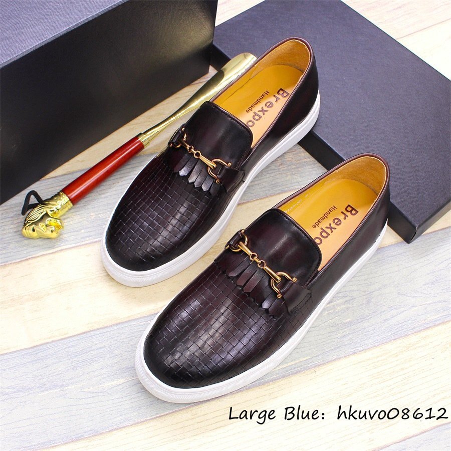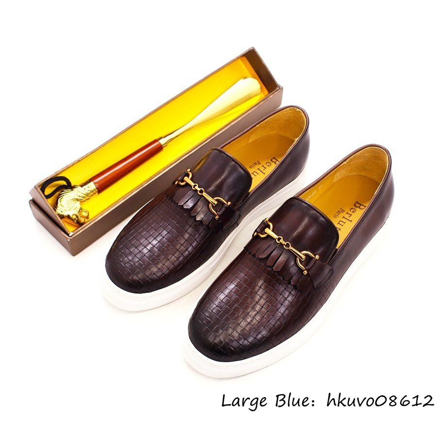 超希少■新品 ビジネスシューズ メンズ 編み込み 職人手作り ローファー スリッポン 本革 レザーシューズ 牛革 紳士靴 革靴 珈琲色 24.5cm