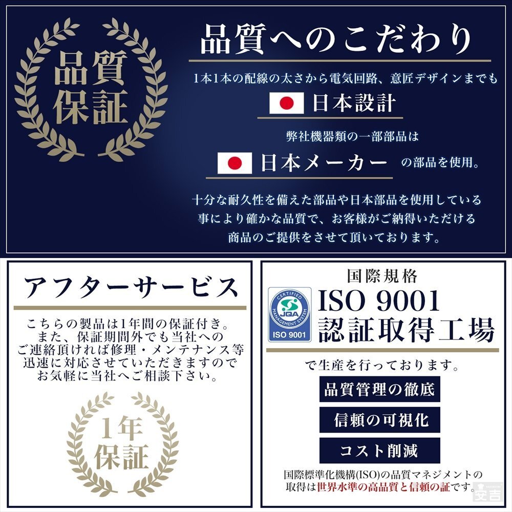 | 保証 | 当社1年保証 保証期間外でも当社へご連絡頂ければ 修理・メンテナンス等、迅速に対応させて頂きますので お気軽に当社へご相談下さい。 |