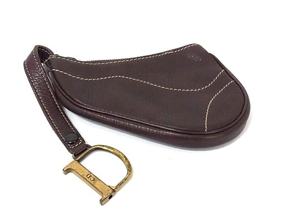1円 ChristianDior クリスチャンディオール サドル レザー キーリング付き 小銭入れ コインケース 小物入れ レディース ブラウン系 FT3229