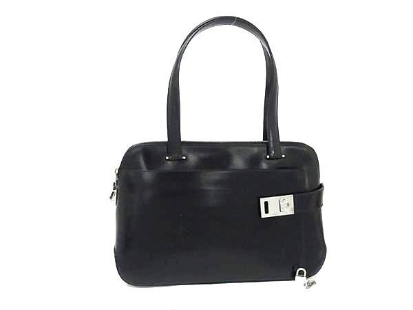 1円 Salvatore Ferragamo フェラガモ ガンチーニ レザー トートバッグ ハンドバッグ ショルダー 肩掛け ブラック系 FP9230
