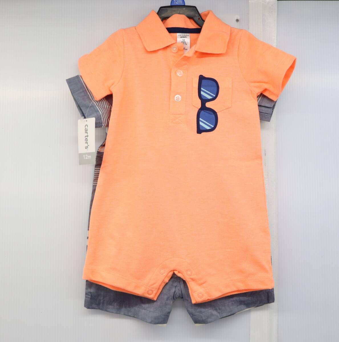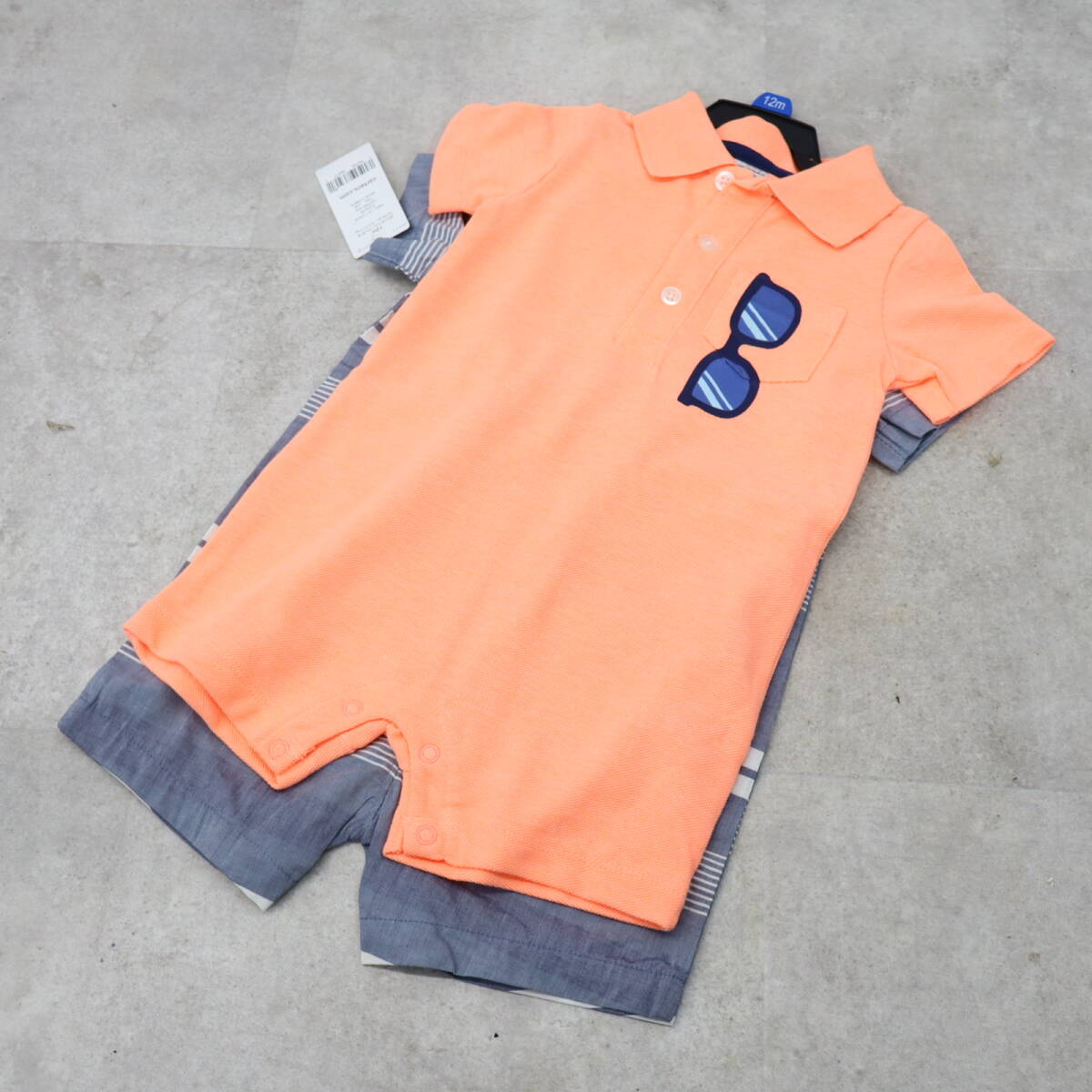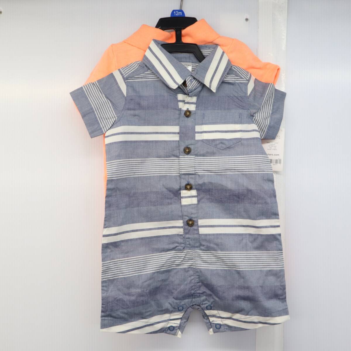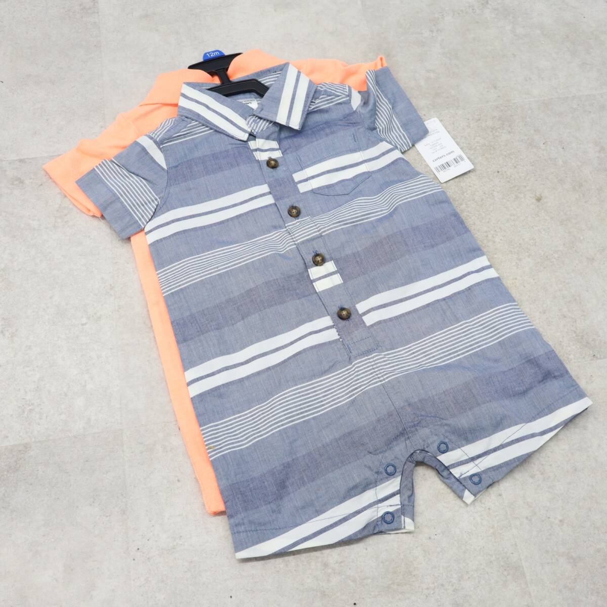 ∨未使用品 2枚まとめ|ベビー服 12m|Carters カーターズ ポロシャツ風 ストライプ|約70-75cm 約9.3-11.1kg ■P4022の出品です!