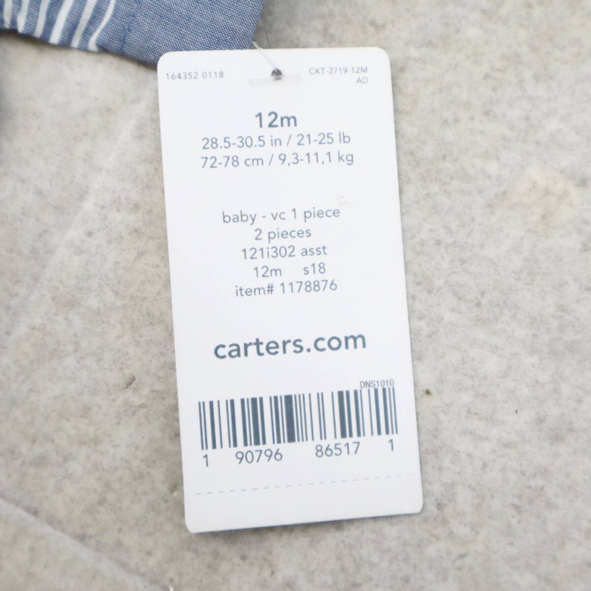 ∨未使用品 2枚まとめ|ベビー服 12m|Carters カーターズ ポロシャツ風 ストライプ|約70-75cm 約9.3-11.1kg ■P4022