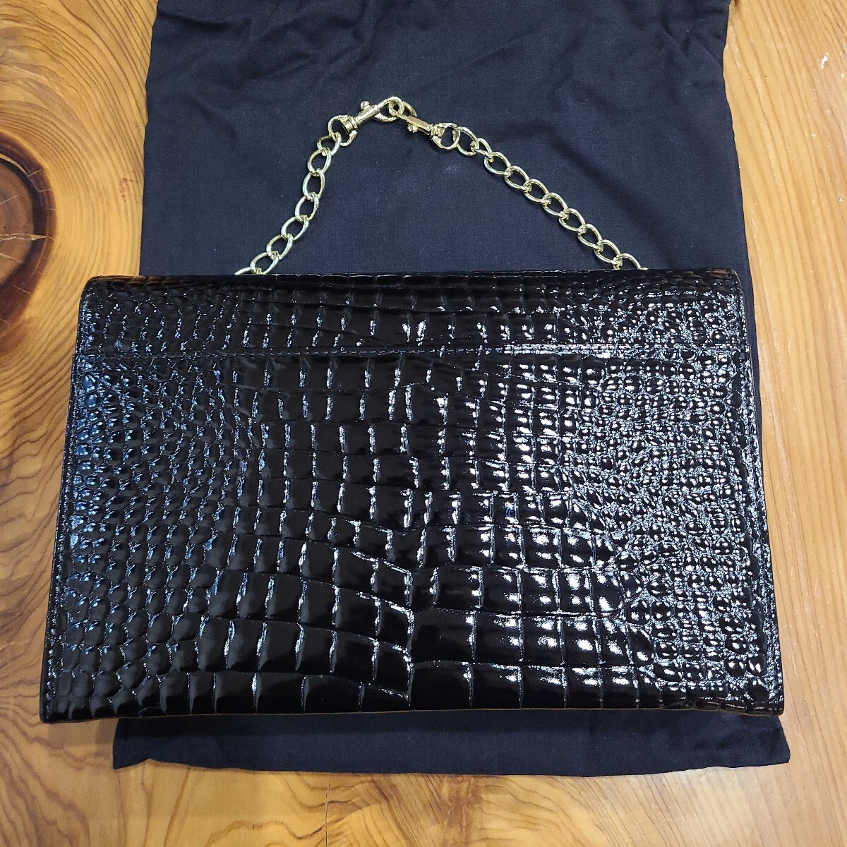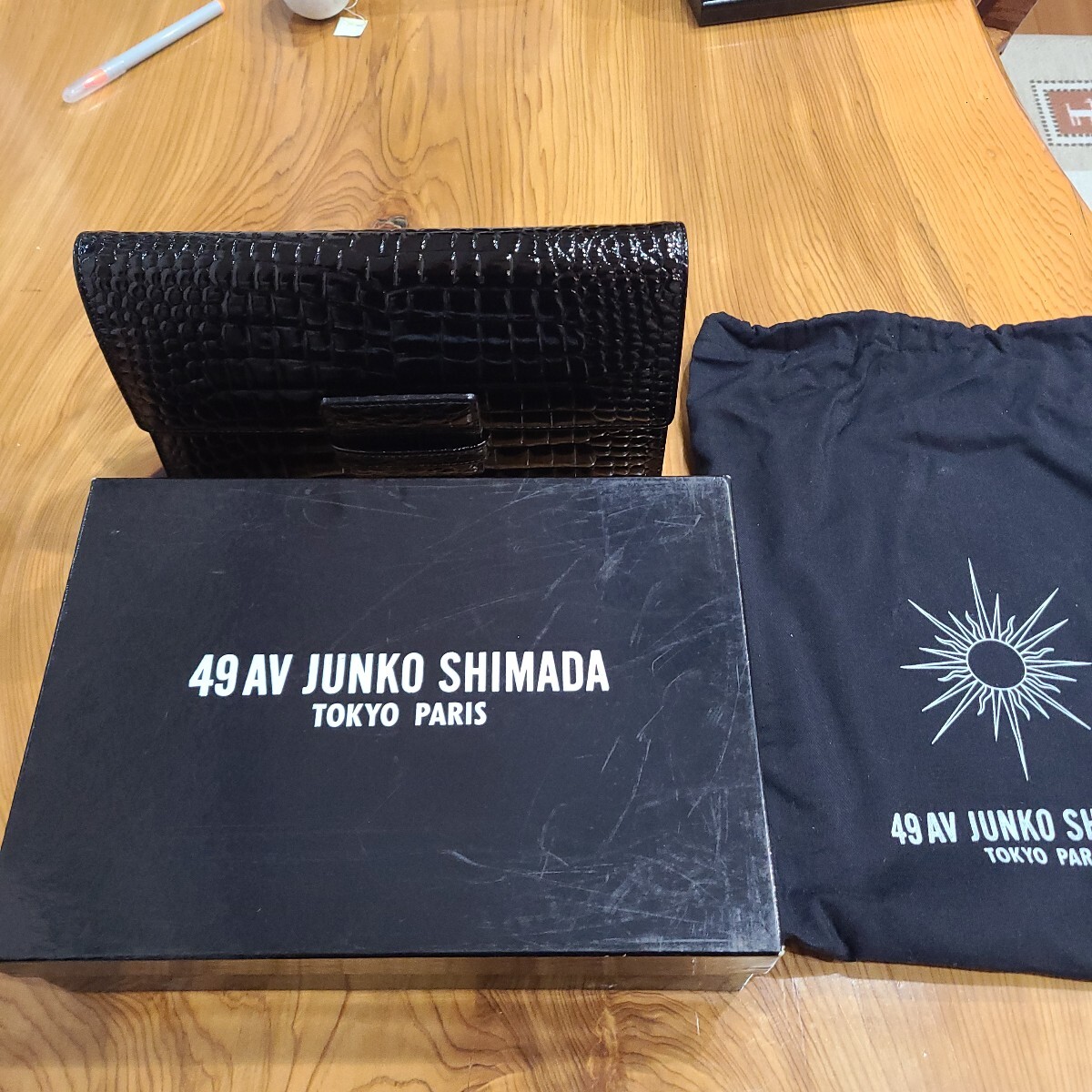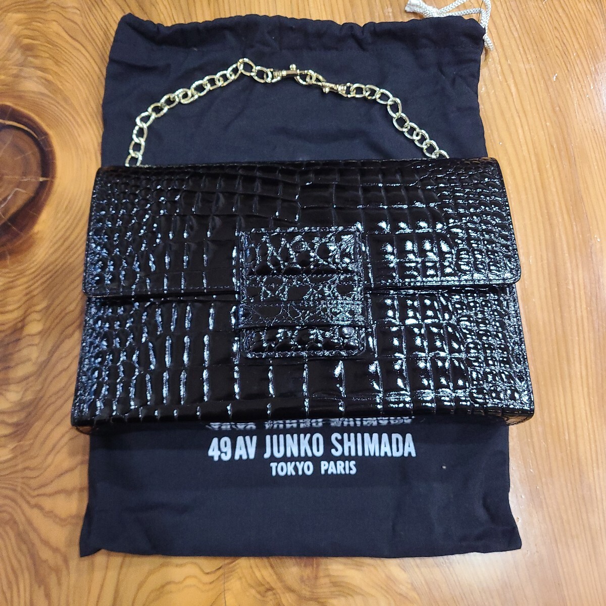 JUNKO SHIMADA ジュンコシマダ クラッチバッグ クロコ型押 エナメル ブラック