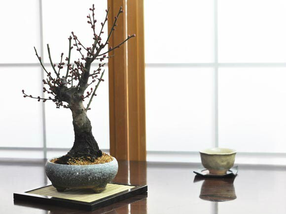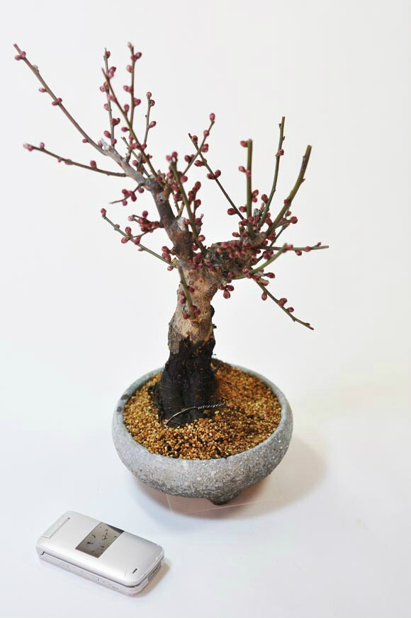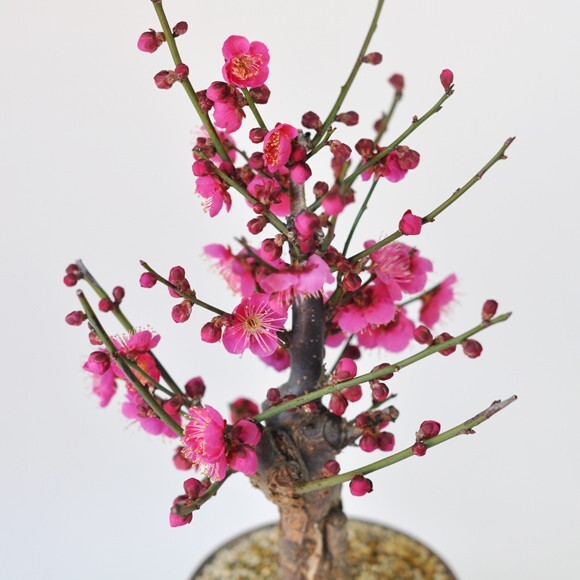 枝一面に赤い梅の花を咲かせます。※植物のためお届けするものには個体差があります。 ご了承の上、ご購入くださいませ。メインの写真は3分咲き