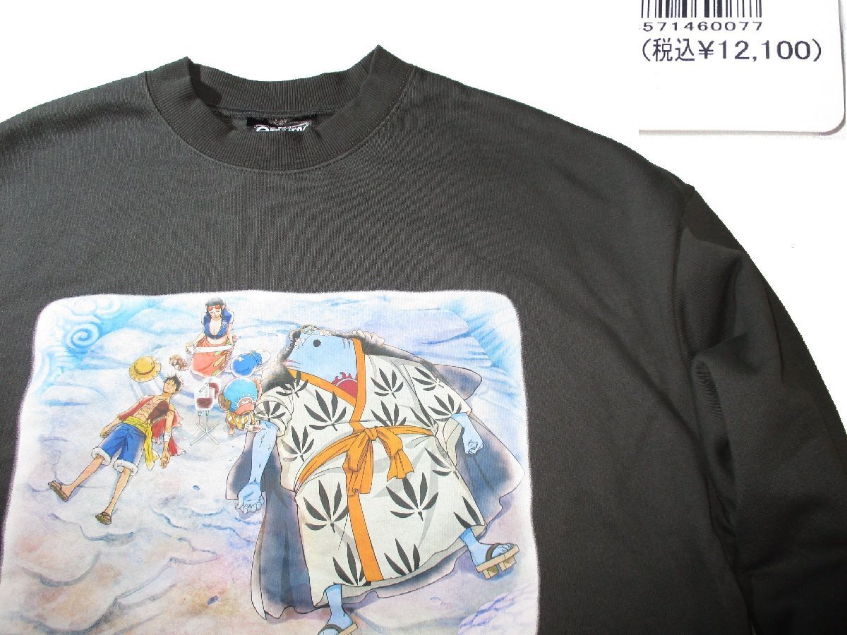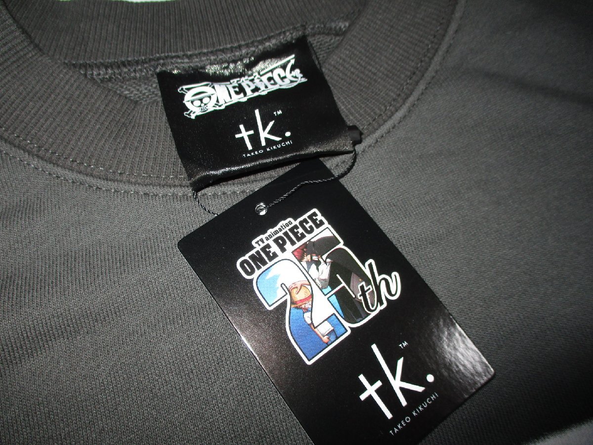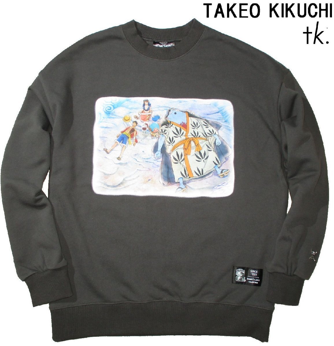 新品 秋冬 M 定価1.2万▼ タケオキクチ tk. × ワンピース ONE PIECE ▼ ジンベエ 綿100% スエット トレーナー ビッグシルエット 灰 墨 黒