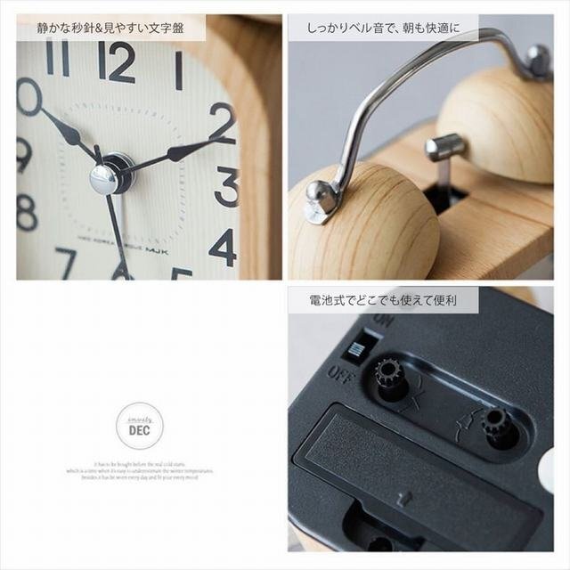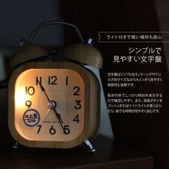 【木の温もりあふれる、目覚まし置き時計】 明るい木目調にぬくもりを感じる、ほっこりとした可愛らしさの目覚まし時計です。 流行に左右されないデザインはおしゃれで場所を選ばず長くご使用いただけます。 【秒針がカチカチいわない静音タイプ】 スムーズに動いてカチカチしない静音連続秒針。 秒針が刻む音が気にならないので日常生活の妨げになりません。 リラックスタイムのおともに、読書や勉強など集中したいシーンにもオススメです。 寝室はもちろん、オフィスやリビング、子ども部屋などにも最適。 【ライト付きの見やすい文字盤】 文字盤はくっきり見やすいシンプルなモノトーンデザイン。 長めの針と、背面ボタンで光るナイトライトで時間が見やすく安心です。 【しっかりベル音でお目覚めをサポート】 可愛いフォルムながらも、しっかりとしたベルの音で目覚めを強力サポート。 電子時計のアラームではもの足りない方に最適! 気持ちのよい1日のスタートにぴったりです! 【ベッドサイドにぴったりなコンパクトサイズ】 ベッドサイドや本棚にも置きやすい小型サイズ。 電池式で使い方や設定も簡単です。電池は別売りです。 海外インポートなので、細かいホツレや汚れが有る場合がございます。そして,宅配便で発送しますので,箱付きの商品は角部分が凹む可能性がございます。ご理解の上ご購入ください。 ★お支払い方法はYahooかんたん決済しか選べないので,ご了承ください。 ★発送について★ ①基本は佐川急便で,ご入金が確認取れたあと,3-7日以内に発送させていただきます。場合によって1日2日ぐらい延長する可能性がございます。ご了承ください。 ②小物は他の宅配会社に頼む可能性がございます。その場合は事前に連絡させていただきます。 ③送料に付いて:沖縄、北海道、一部離島は別途料金が発生します。ご了承ください ★注意事項★ ご質問へのご返信は、営業時間外、また担当者不在などによりご返信が遅れる場合もございますので、あらかじめご了承ください。 質問欄からの値下げ交渉、返信はご対応出来ませんので予めご了承下さい。 在庫が切れた時,オークション自体を早期終了する場合がございます。 商品発送完了時に評価を行っております。評価の必要ない方は予めご連絡くださいますようお願い申し上げます。 ご連絡をいただけないまま27日以上過ぎました場合、落札者様の都合で削除させていただく可能性がございます。その場合自動的に悪い評価がついてしまいますのでご了承ください。 オークション管理上、商品の同梱の際の送料はオークション毎にかかります。ご了承お願いいたします。