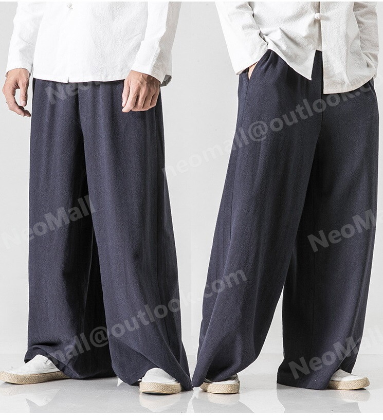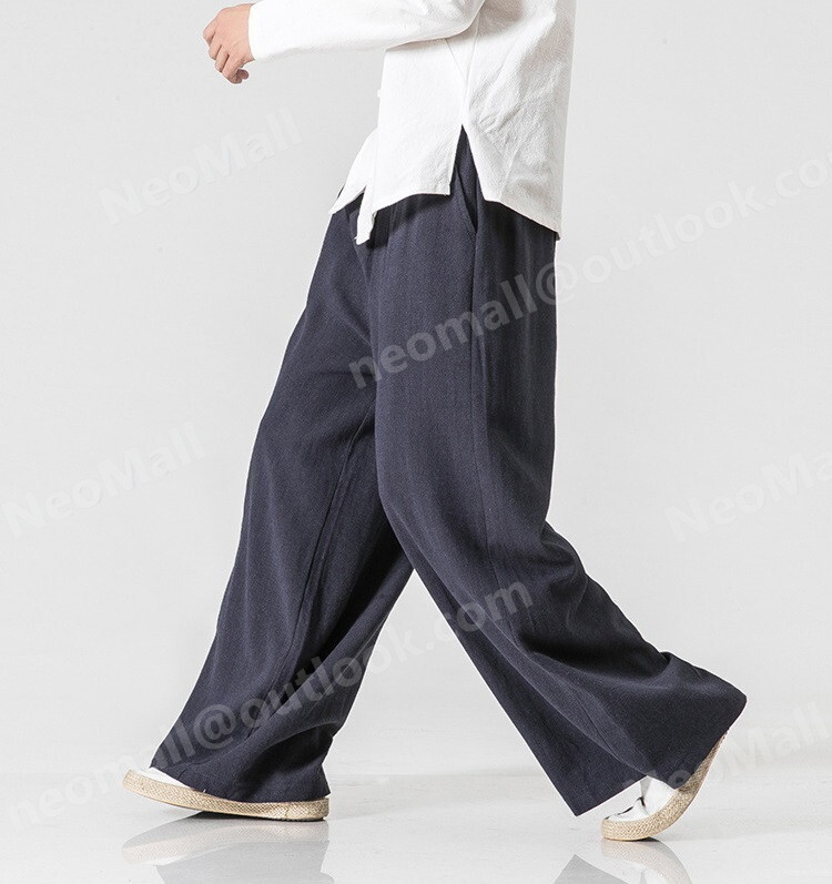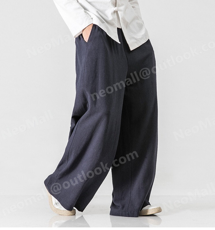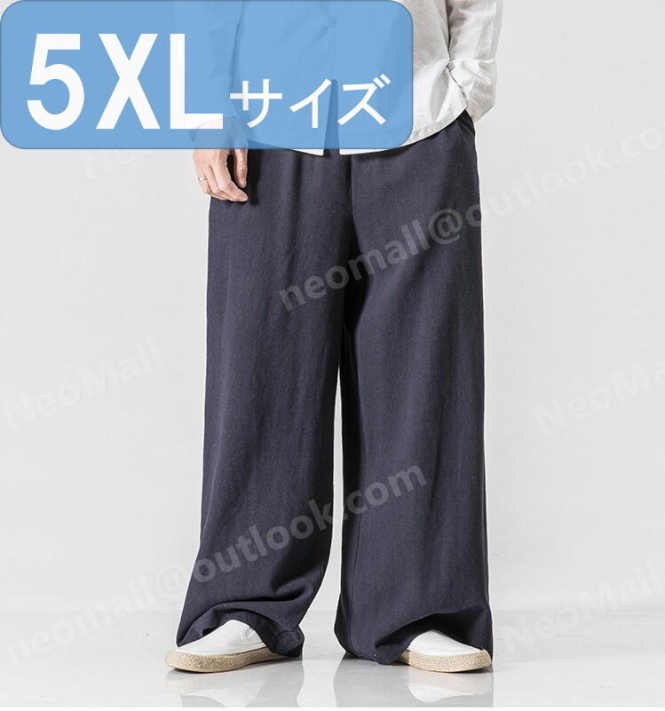 お買い得☆メンズ ワイドパンツ ネイビー 5XL カジュアル ロングパンツ スウェット 無地 ポケット付 オールシーズン【064】