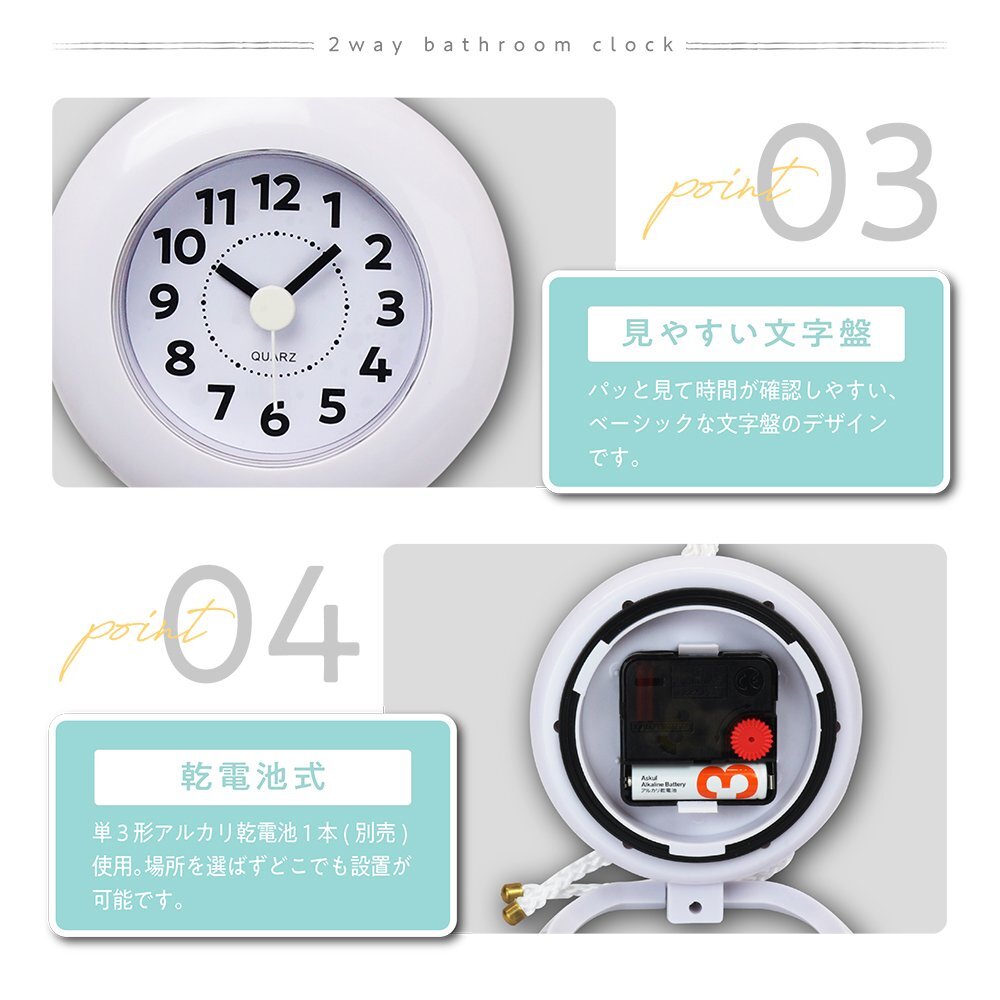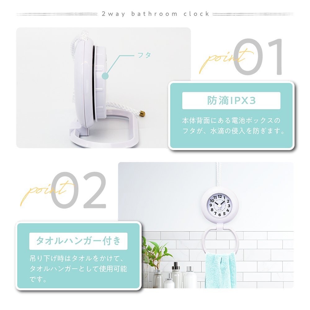 | 防滴 IPX3 2WAY バスルームクロック | |