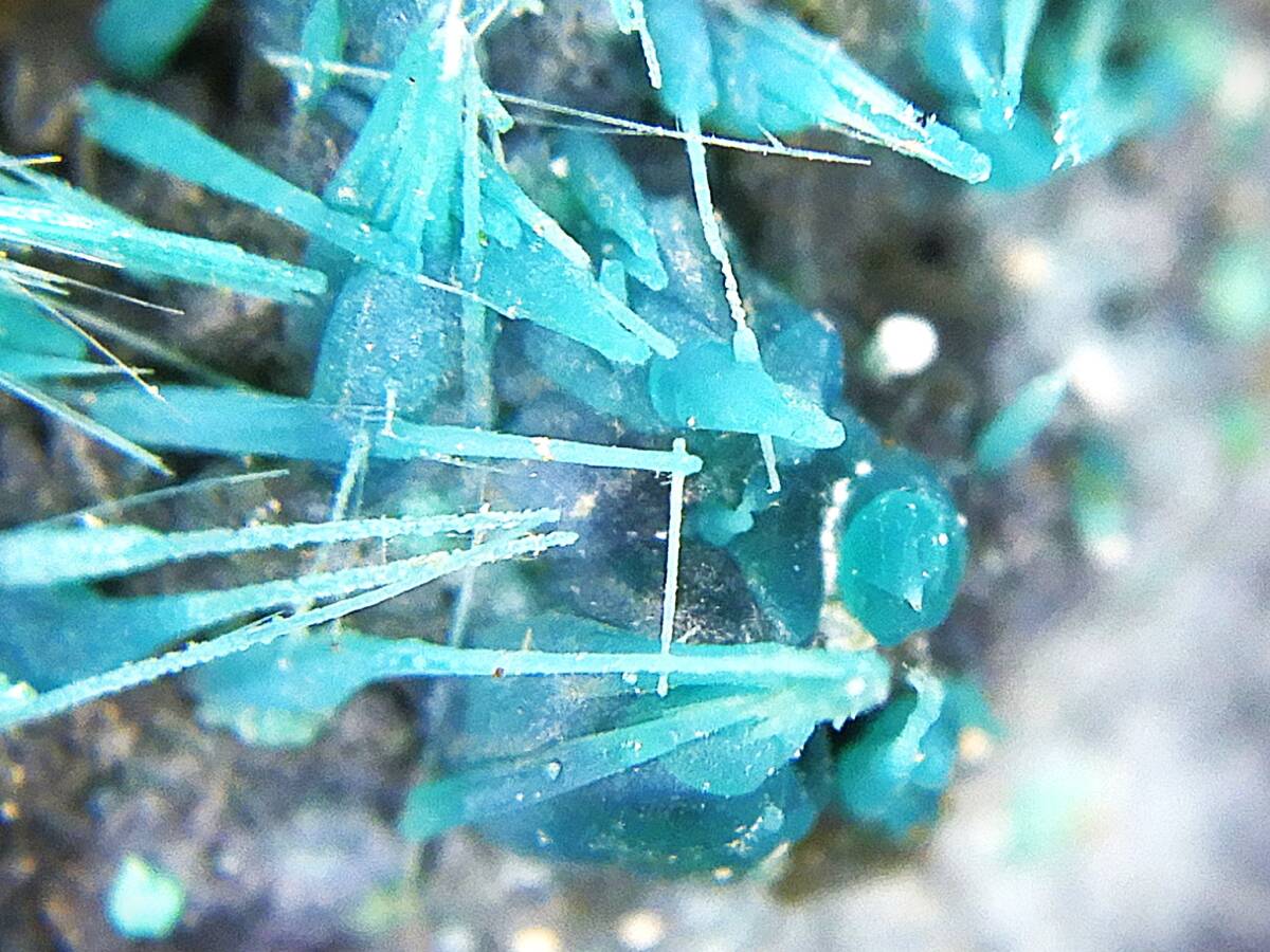 ブロシャン銅鉱の針状結晶は極一部(画像3)を残して珪孔雀石に覆われています。