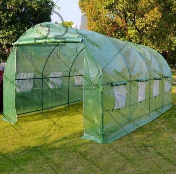 店長特選 野菜 育苗 PE素材 ビニールハウス 菜園ハウス 温室 グリーンハウス 間口2.15m×奥行4.85m×高さ2.2m スチールパイプ (T476)