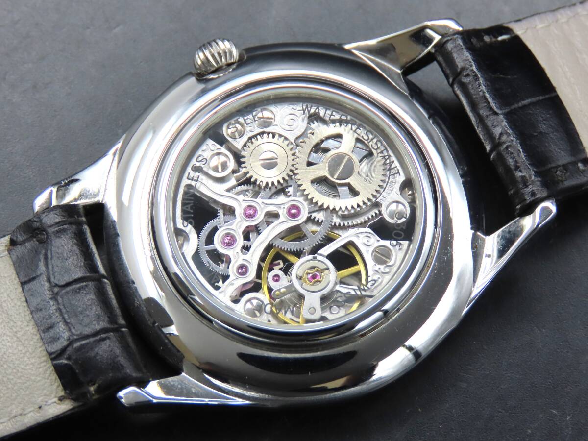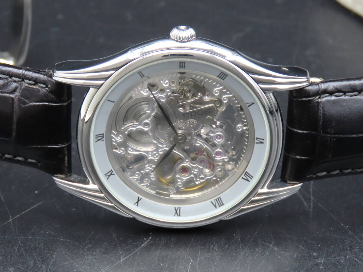1円~! 稼動品★正規品 epos エポス 3305 両面スケルトン 手巻き 純正ブレス メンズ腕時計 PPKLG2263