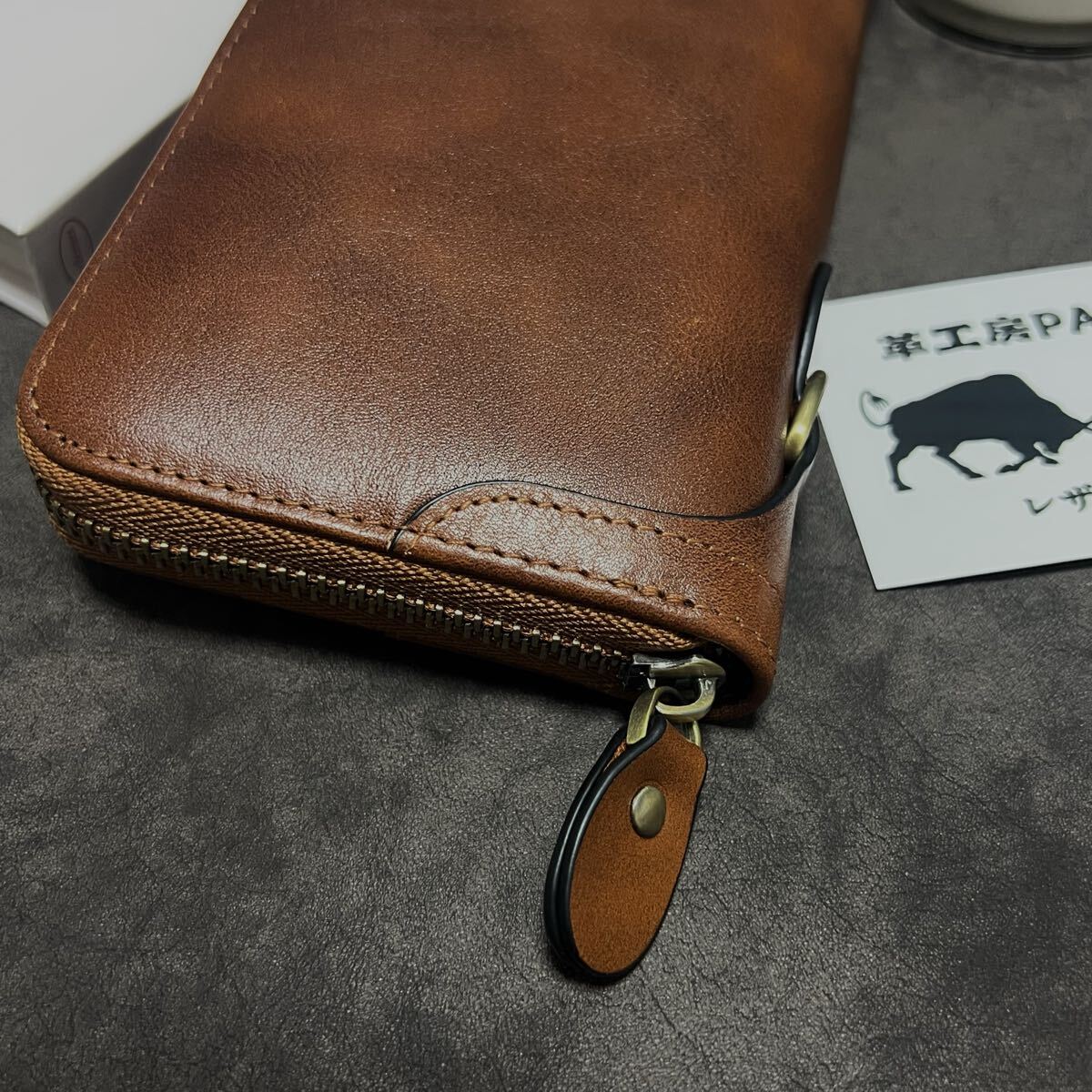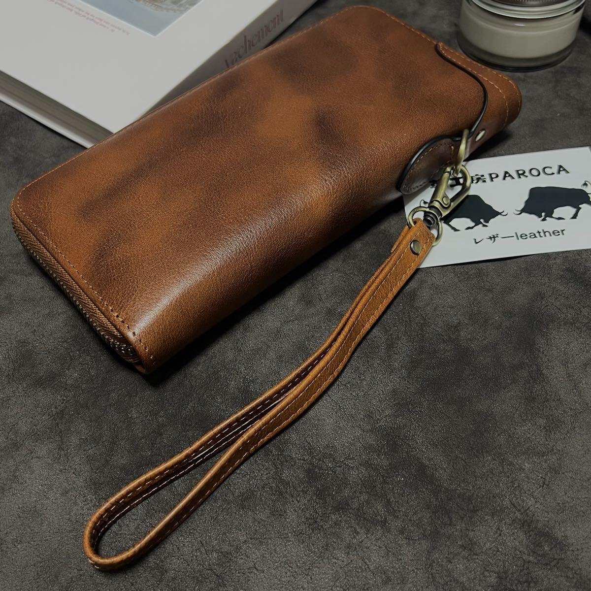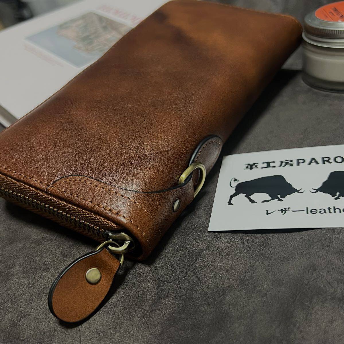 職人が一つ一つの工程にこだわり作り上げた牛革長財布です。手作業で何度も染料を塗り込んだ。使うほどに色合いが増し手に馴染む素材です、使えば使うほど手になじみ、味わいが増していきます。丈夫で風合いが良いです。吸濕性、放濕性、保性に優れています。