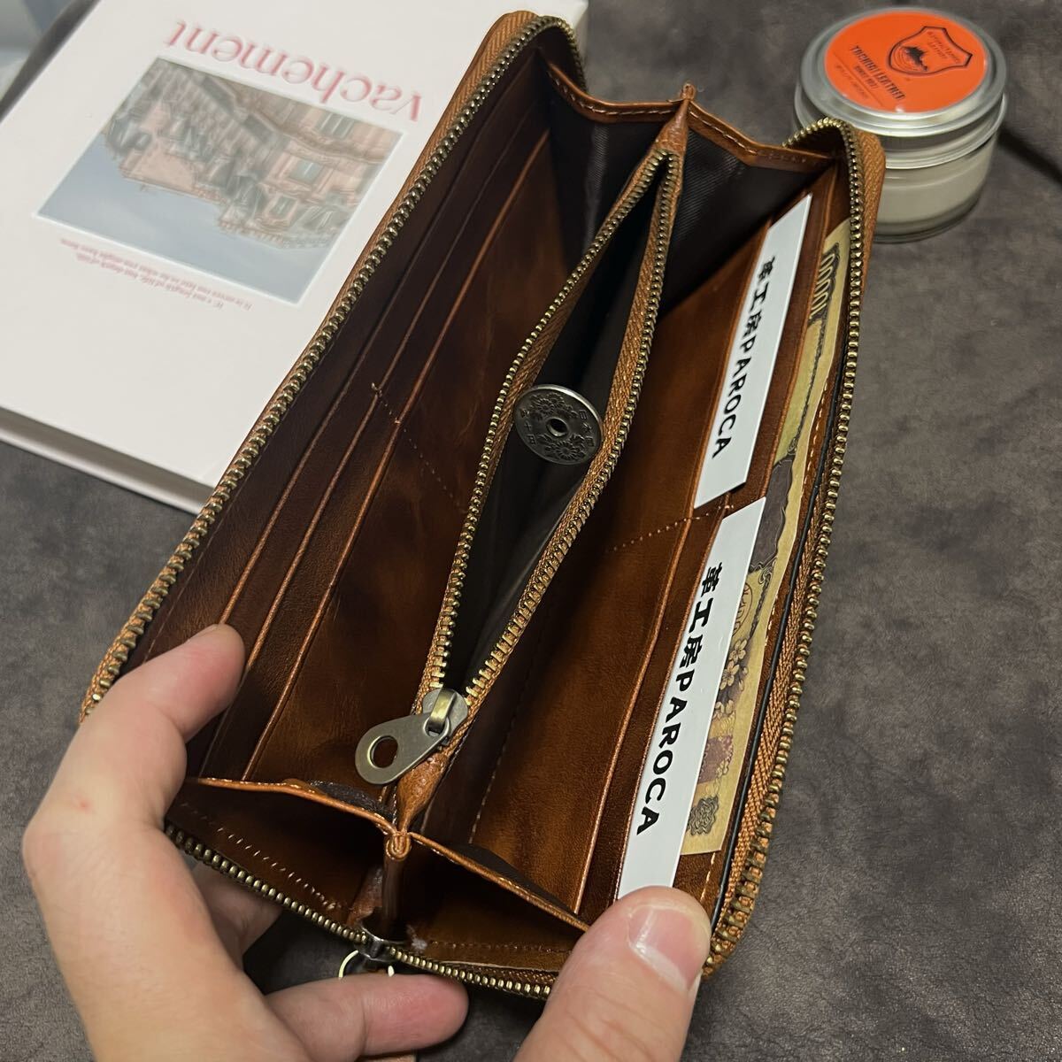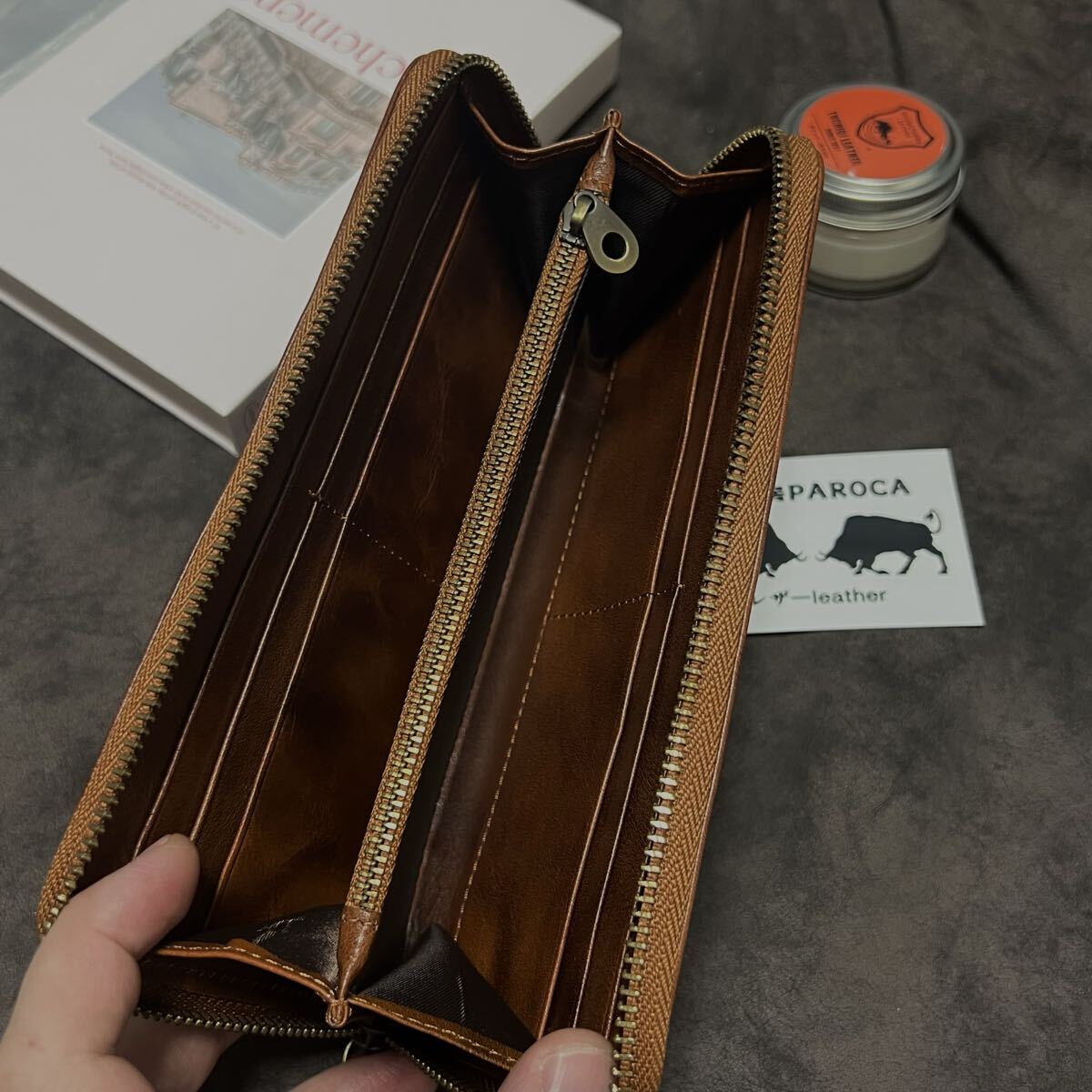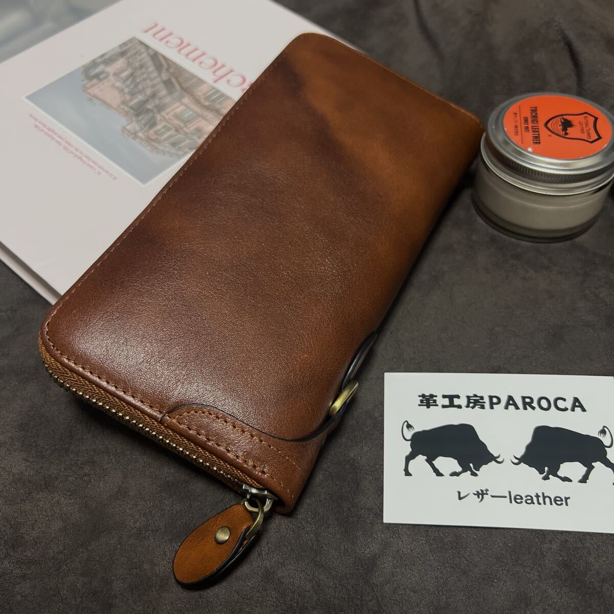 職人が一つ一つの工程にこだわり作り上げた牛革長財布です。手作業で何度も染料を塗り込んだ。使うほどに色合いが増し手に馴染む素材です、使えば使うほど手になじみ、味わいが増していきます。丈夫で風合いが良いです。吸濕性、放濕性、保性に優れています。